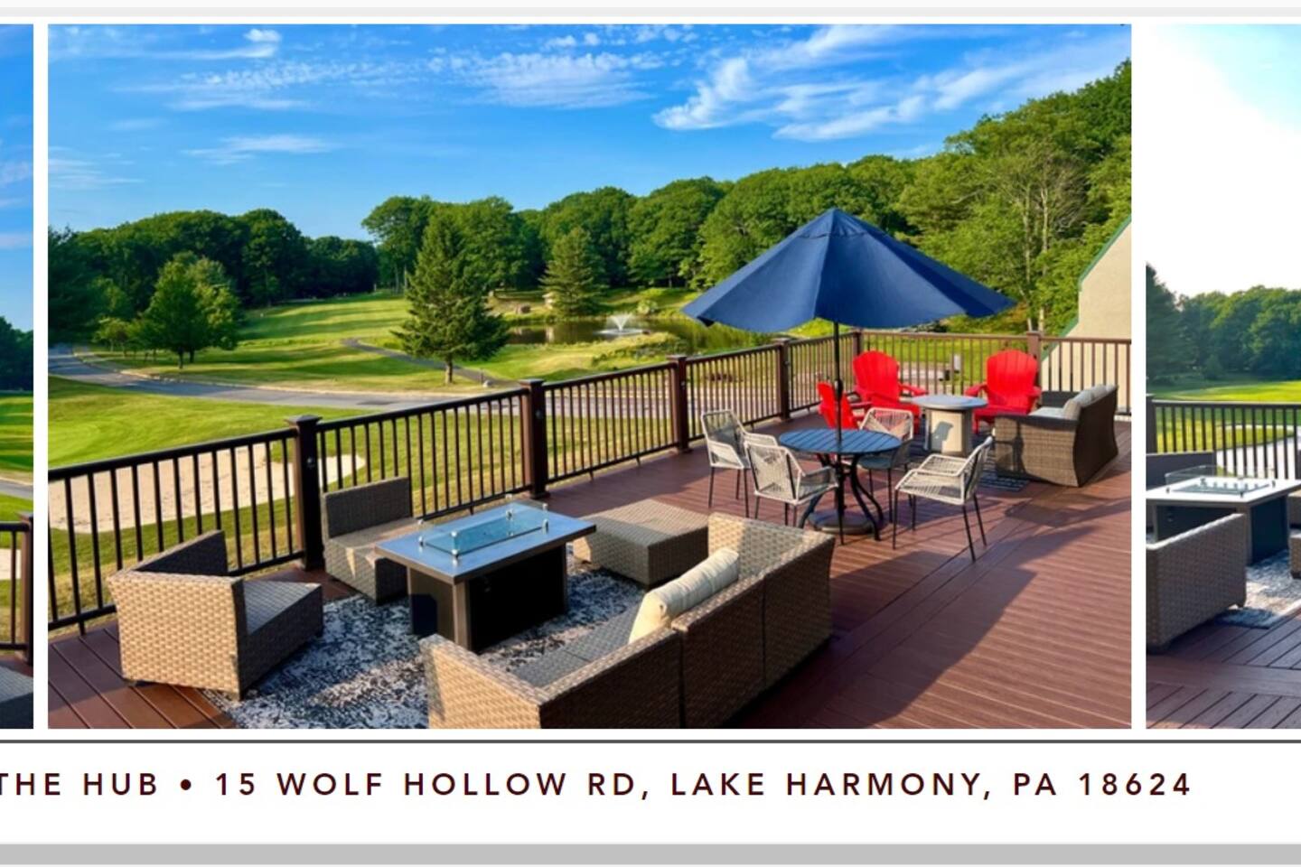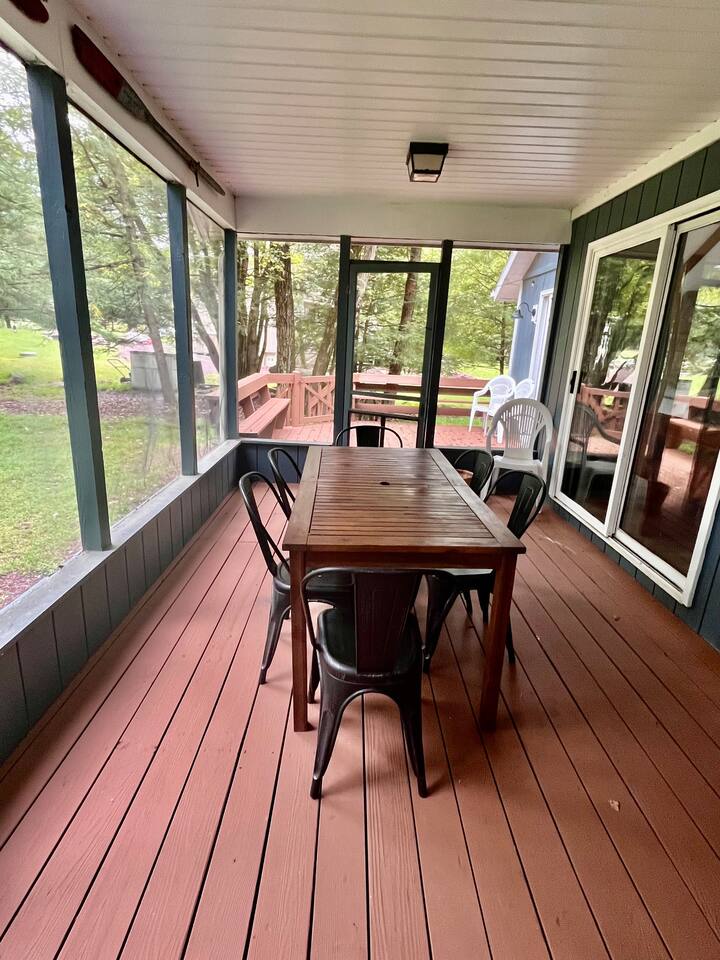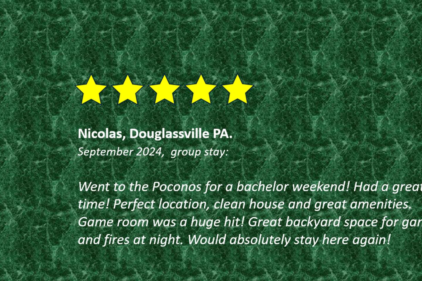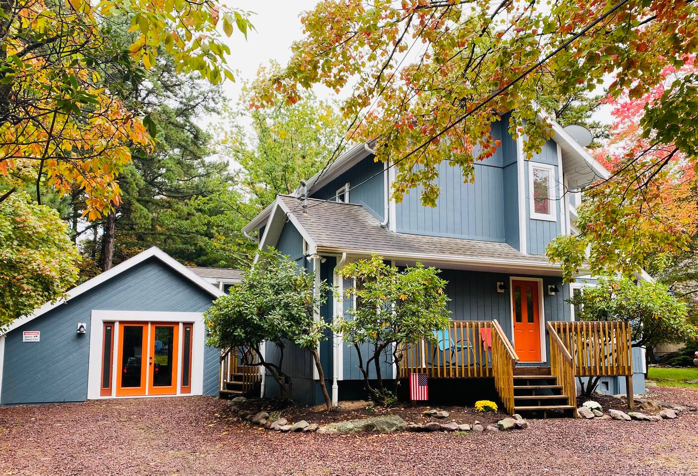 Clean fresh and inviting, this home has everything to make your stay as comfortable as possible. 1ST FLOOR • Huge family room invites you in with bright colors, pocono themed decor, real wood fireplace and lots of sofa seating to sink into. • The large kitchen provides all the necessary appliances and cookware to feed the whole gang! StockPots, SlowCookers, lots of wine glasses (important) and a great coffee maker are ready for your stay. Seating for 8 allows you to have family meals or game nights too! • Jump into the Pocono Raceway themed Gameroom to find vaulted ceiling, 9' Pool Table, Darts, oversized Connect4, RingToss, Smart TV and mini fridge- everyone loves this space! • Bedroom 1 is on the first floor- King bed en-suite with lots of room, full sized mirror, large closet and dresser. AC/Heat Spilt. • Bathroom 1 on main floor is a full bath (shower/tub combo), marble floors, towel warmer and is open to the hallway as well as Master bedroom 2ND FLOOR • The landing at top of the staircase is our Gaming area, with 2000 old school games to choose from on the large screen TV. A Full sized sofa converts to added sleeping for guest #9 • Upstairs Bedroom 1 is a Queen bed with closet, dresser AC/Heat Spilt • Upstairs Bedroom 2 is a Full bed, and Twin Bunk beds, large closet and dresser - big room with AC/Heat split. • Full bathroom on this level is between both rooms- Shower/Tub combo • Full size Washer/Dryer provided for your convenience. • Outside features a Solo Stove Firepit in the backyard for traditional campfires, s'mores, hotdogs and deer watching! Screened in back porch with dining table and dedicated gas connected grill. 4 various sized bikes are free to use as well, can't guarantee condition. *THE LAKE Lake Harmony is a private lake. I will have free beach access for your first 8 guests. Many visitors will rent kayaks, paddleboards or time on pontoon tours/waterskiing, all info with links will be sent to you once booked :) The cabin is located conveniently to Lake Harmony and moments from Nick's Lakehouse, Shenanigans and other lakeside eateries. Enjoy other very local amenities such as Jack Frost/Big Boulder Ski Resort, Hickory Run State Park or take a short drive into Jim Thorpe for the day. Once you book, I will send you a local attraction document to help plan your best trip ever! Please be sure to wander outdoors and enjoy the back yard or take a stroll thru the Split Rock neighborhood. If you bring your pet, there’s a great walking loop around the back of the house on Red Oak to Hickory. Protected game lands are so pretty! Parks up to 8 cars easily. Guest must be 25 years of age to book ~Guest will be required to sign our Short Term Rental Agreement and send proof of identity via valid drivers license. ~Any sort of smoking must be done outdoors ~$50 Pet Fee Per Pet/Per Stay ~Pack n Play & HighChair onsite at all times