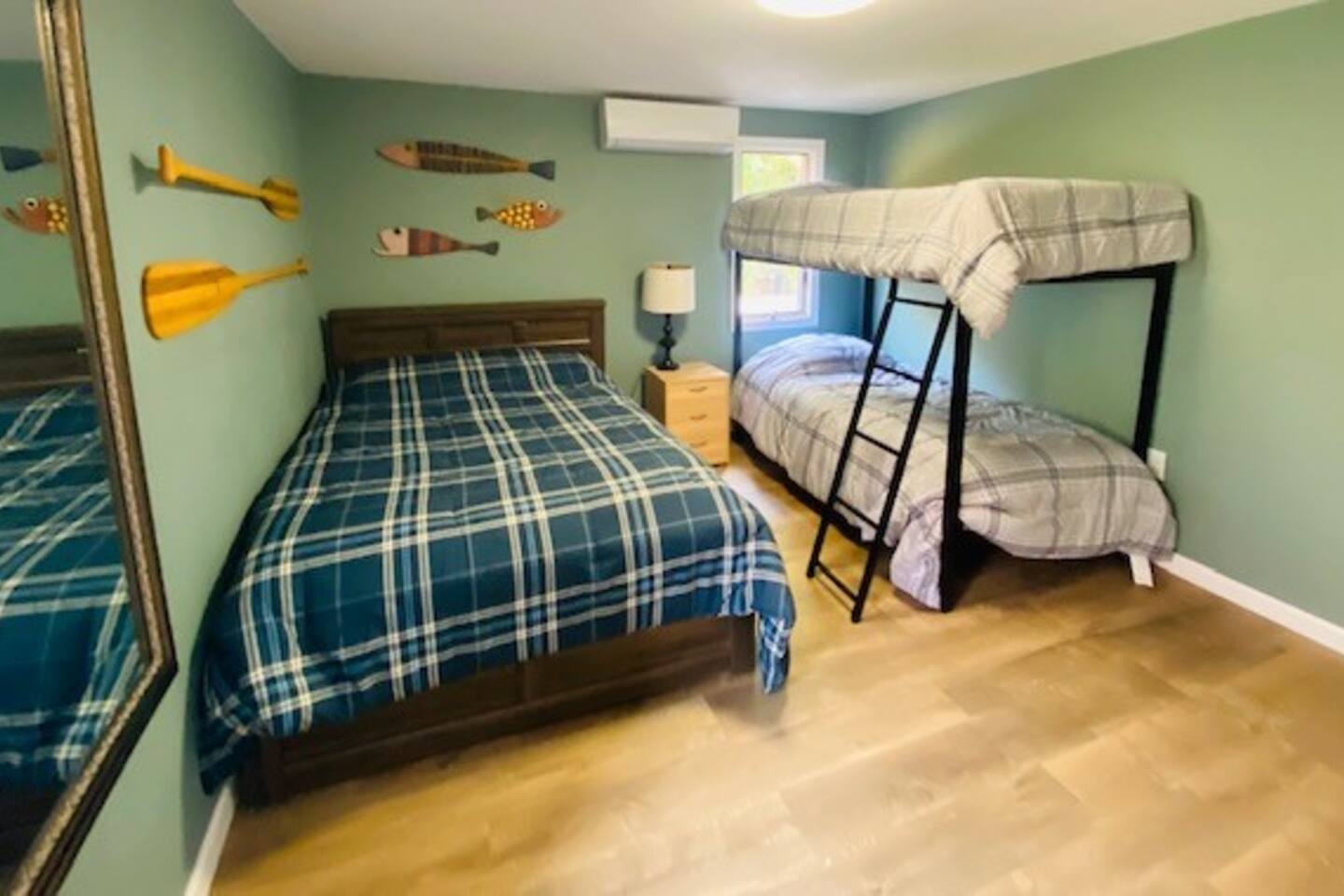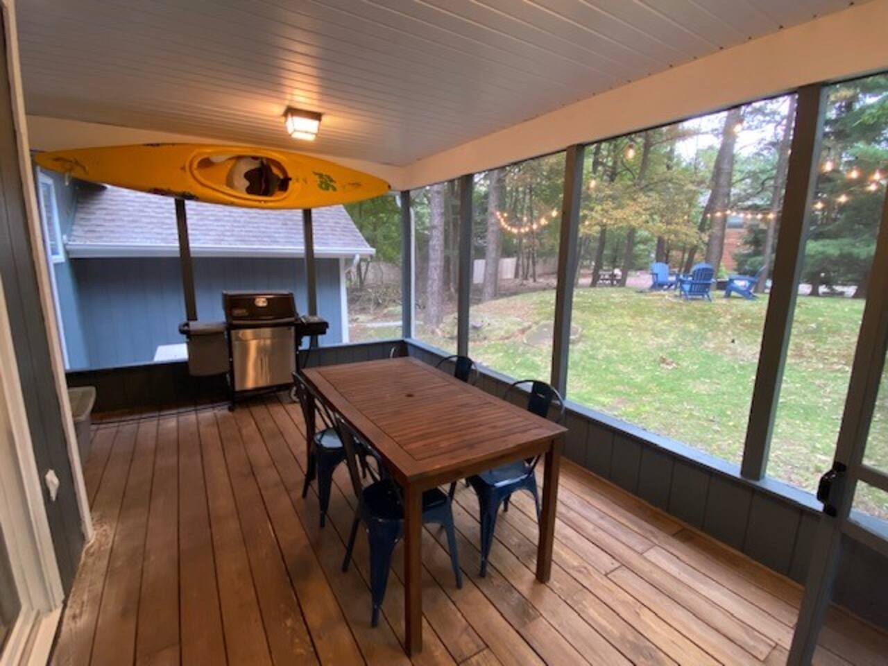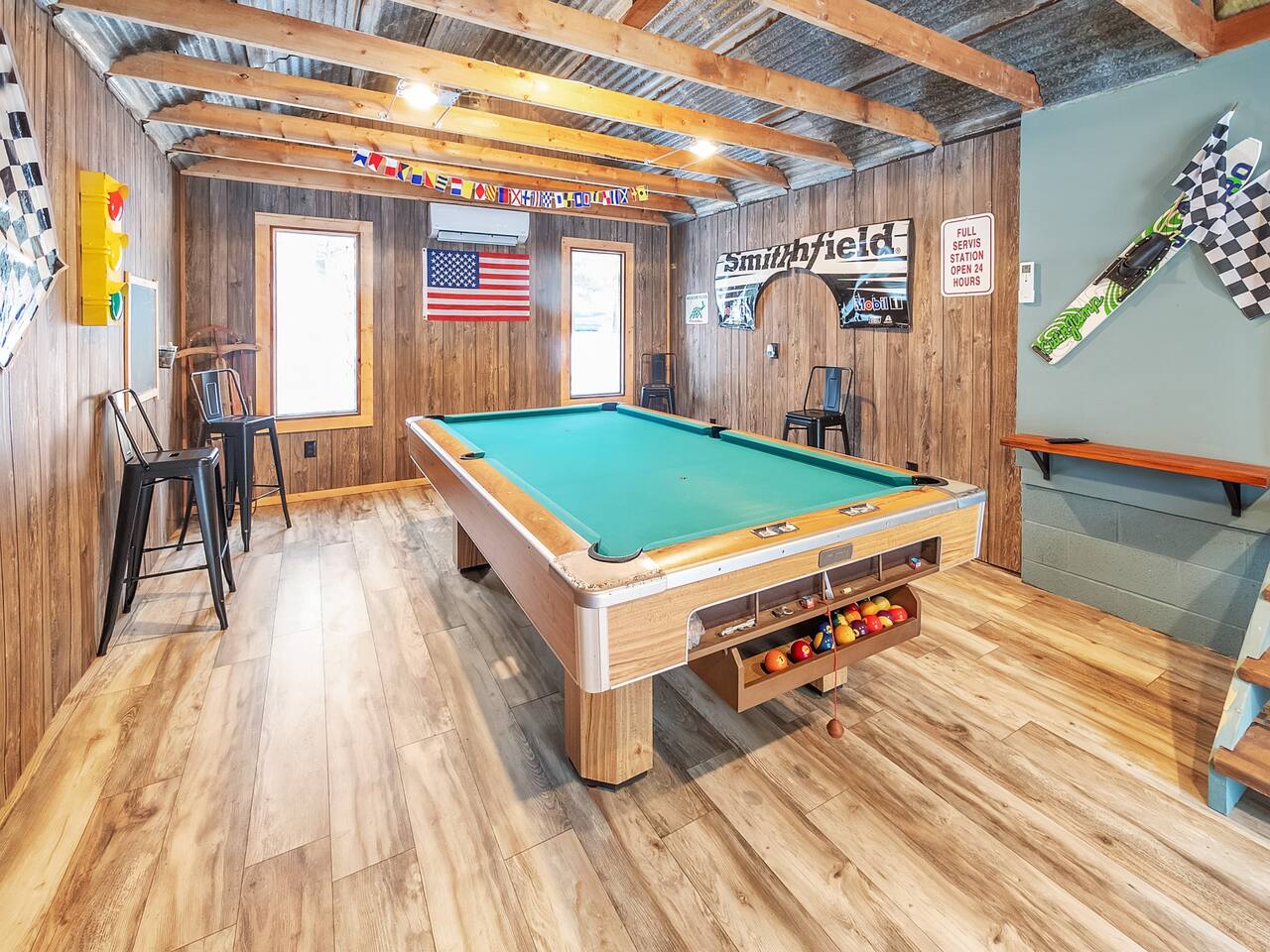 Clean fresh and inviting, this home has everything to make your stay as comfortable as possible. 1ST FLOOR • Huge family room invites you in with bright colors, pocono themed decor, real wood fireplace and lots of sofa seating to sink into. • The large kitchen provides all the necessary appliances and cookware to feed the whole gang! StockPots, SlowCookers, lots of wine glasses (important) and a great coffee maker are ready for your stay. Seating for 8 allows you to have family meals or game nights too! • Jump into the Pocono Raceway themed Gameroom to find vaulted ceiling, 9' Pool Table, Darts, oversized Connect4, RingToss, Smart TV and mini fridge- everyone loves this space! • Bedroom 1 is on the first floor- King bed en-suite with lots of room, full sized mirror, large closet and dresser. AC/Heat Spilt. • Bathroom 1 on main floor is a full bath (shower/tub combo), marble floors, towel warmer and is open to the hallway as well as Master bedroom 2ND FLOOR • The landing at top of the staircase is our Gaming area, with 2000 old school games to choose from on the large screen TV. A Full sized sofa converts to added sleeping for guest #9 • Upstairs Bedroom 1 is a Queen bed with closet, dresser AC/Heat Spilt • Upstairs Bedroom 2 is a Full bed, and Twin Bunk beds, large closet and dresser - big room with AC/Heat split. • Full bathroom on this level is between both rooms- Shower/Tub combo • Full size Washer/Dryer provided for your convenience. • Outside features a Solo Stove Firepit in the backyard for traditional campfires, s'mores, hotdogs and deer watching! Screened in back porch with dining table and dedicated gas connected grill. 4 various sized bikes are free to use as well, can't guarantee condition. *THE LAKE Lake Harmony is a private lake. I will have free beach access for your first 8 guests. Many visitors will rent kayaks, paddleboards or time on pontoon tours/waterskiing, all info with links will be sent to you once booked :) The cabin is located conveniently to Lake Harmony and moments from Nick's Lakehouse, Shenanigans and other lakeside eateries. Enjoy other very local amenities such as Jack Frost/Big Boulder Ski Resort, Hickory Run State Park or take a short drive into Jim Thorpe for the day. Once you book, I will send you a local attraction document to help plan your best trip ever! Please be sure to wander outdoors and enjoy the back yard or take a stroll thru the Split Rock neighborhood. If you bring your pet, there’s a great walking loop around the back of the house on Red Oak to Hickory. Protected game lands are so pretty! Parks up to 8 cars easily. Guest must be 25 years of age to book ~Guest will be required to sign our Short Term Rental Agreement and send proof of identity via valid drivers license. ~Any sort of smoking must be done outdoors ~$50 Pet Fee Per Pet/Per Stay ~Pack n Play & HighChair onsite at all times