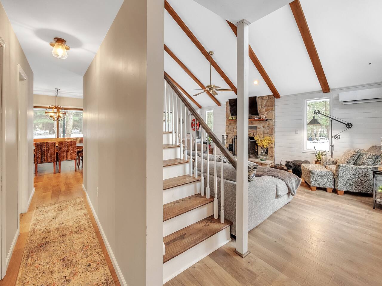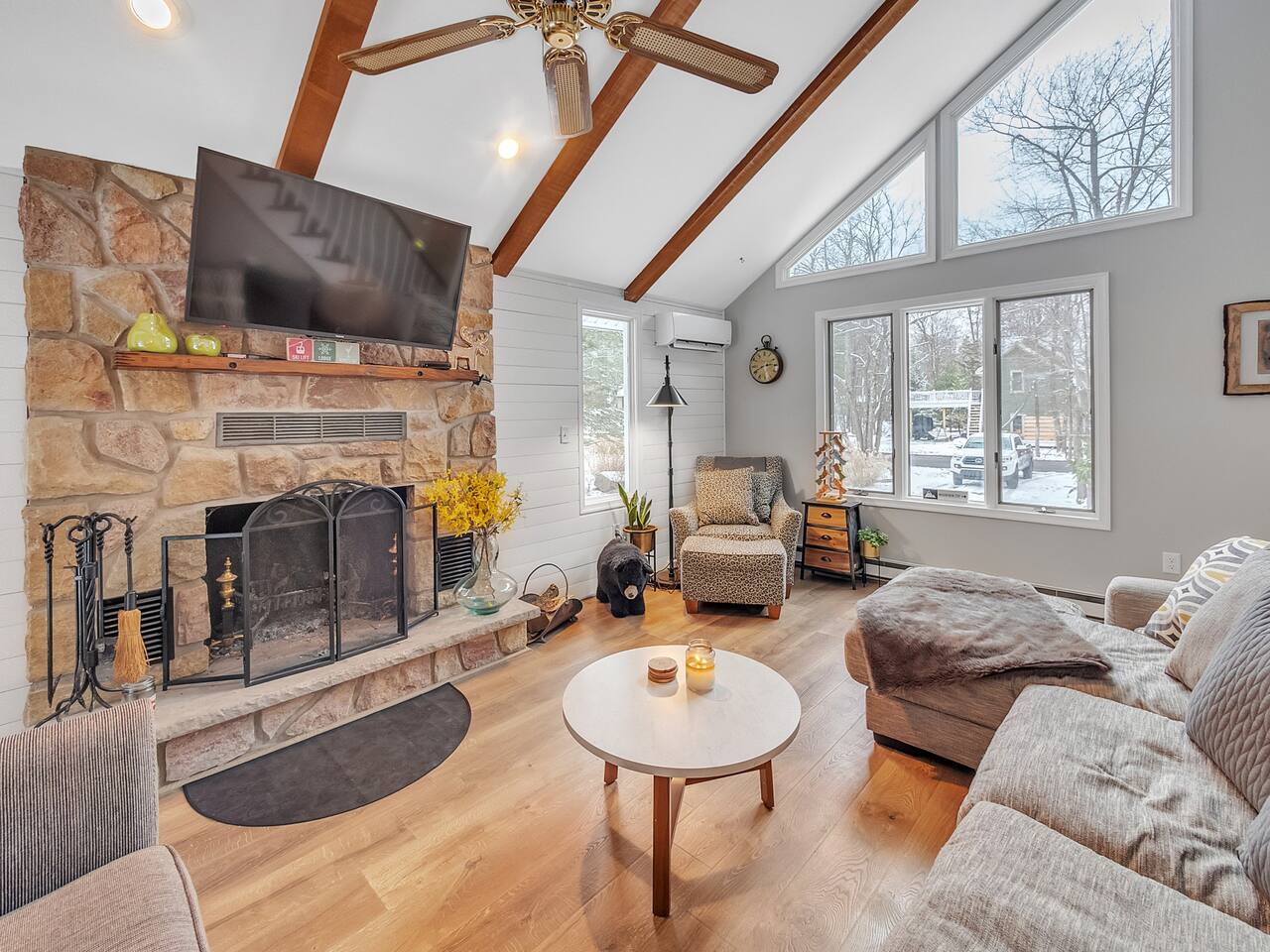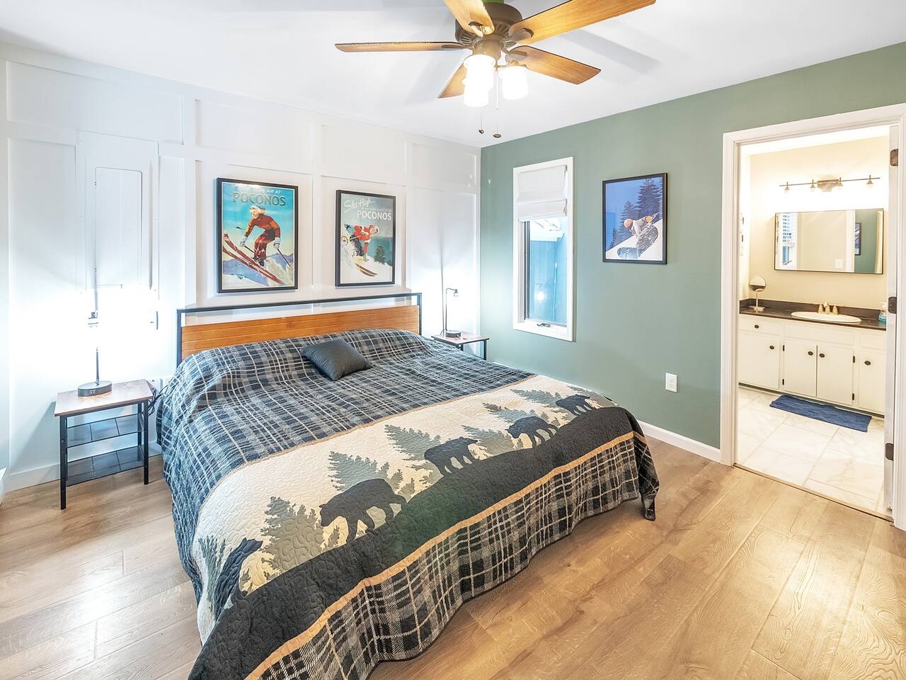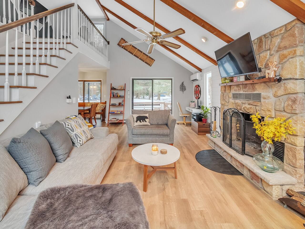 Clean fresh and inviting, this home has everything to make your stay as comfortable as possible. 1ST FLOOR • Huge family room invites you in with bright colors, pocono themed decor, real wood fireplace and lots of sofa seating to sink into. • The large kitchen provides all the necessary appliances and cookware to feed the whole gang! StockPots, SlowCookers, lots of wine glasses (important) and a great coffee maker are ready for your stay. Seating for 8 allows you to have family meals or game nights too! • Jump into the Pocono Raceway themed Gameroom to find vaulted ceiling, 9' Pool Table, Darts, oversized Connect4, RingToss, Smart TV and mini fridge- everyone loves this space! • Bedroom 1 is on the first floor- King bed en-suite with lots of room, full sized mirror, large closet and dresser. AC/Heat Spilt. • Bathroom 1 on main floor is a full bath (shower/tub combo), marble floors, towel warmer and is open to the hallway as well as Master bedroom 2ND FLOOR • The landing at top of the staircase is our Gaming area, with 2000 old school games to choose from on the large screen TV. A Full sized sofa converts to added sleeping for guest #9 • Upstairs Bedroom 1 is a Queen bed with closet, dresser AC/Heat Spilt • Upstairs Bedroom 2 is a Full bed, and Twin Bunk beds, large closet and dresser - big room with AC/Heat split. • Full bathroom on this level is between both rooms- Shower/Tub combo • Full size Washer/Dryer provided for your convenience. • Outside features a Solo Stove Firepit in the backyard for traditional campfires, s'mores, hotdogs and deer watching! Screened in back porch with dining table and dedicated gas connected grill. 4 various sized bikes are free to use as well, can't guarantee condition. *THE LAKE Lake Harmony is a private lake. I will have free beach access for your first 8 guests. Many visitors will rent kayaks, paddleboards or time on pontoon tours/waterskiing, all info with links will be sent to you once booked :) The cabin is located conveniently to Lake Harmony and moments from Nick's Lakehouse, Shenanigans and other lakeside eateries. Enjoy other very local amenities such as Jack Frost/Big Boulder Ski Resort, Hickory Run State Park or take a short drive into Jim Thorpe for the day. Once you book, I will send you a local attraction document to help plan your best trip ever! Please be sure to wander outdoors and enjoy the back yard or take a stroll thru the Split Rock neighborhood. If you bring your pet, there’s a great walking loop around the back of the house on Red Oak to Hickory. Protected game lands are so pretty! Parks up to 8 cars easily. Guest must be 25 years of age to book ~Guest will be required to sign our Short Term Rental Agreement and send proof of identity via valid drivers license. ~Any sort of smoking must be done outdoors ~$50 Pet Fee Per Pet/Per Stay ~Pack n Play & HighChair onsite at all times