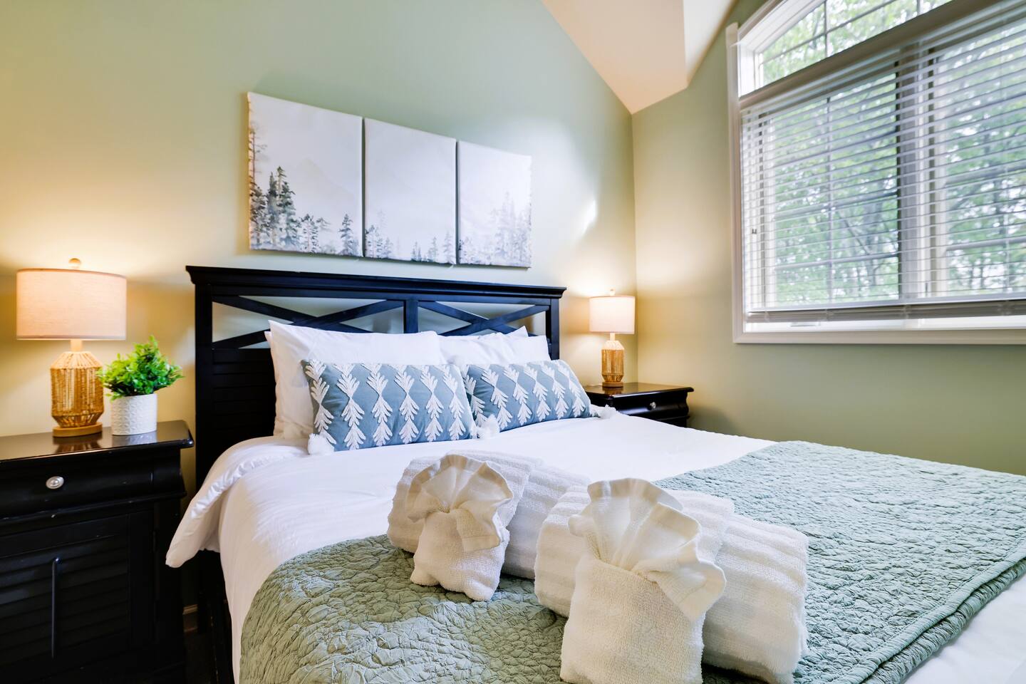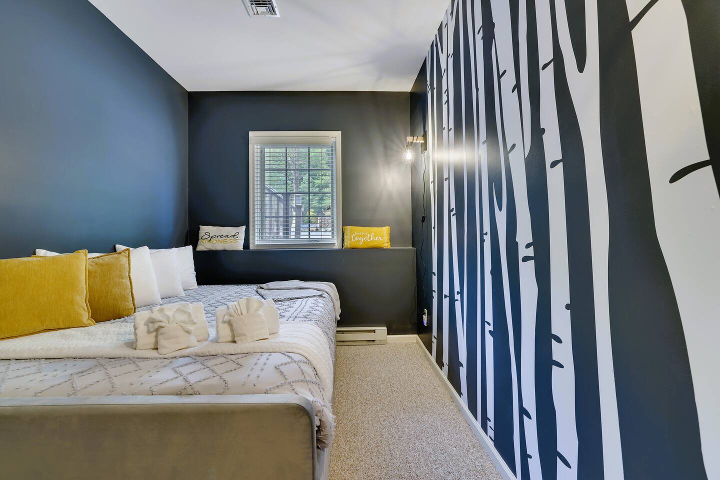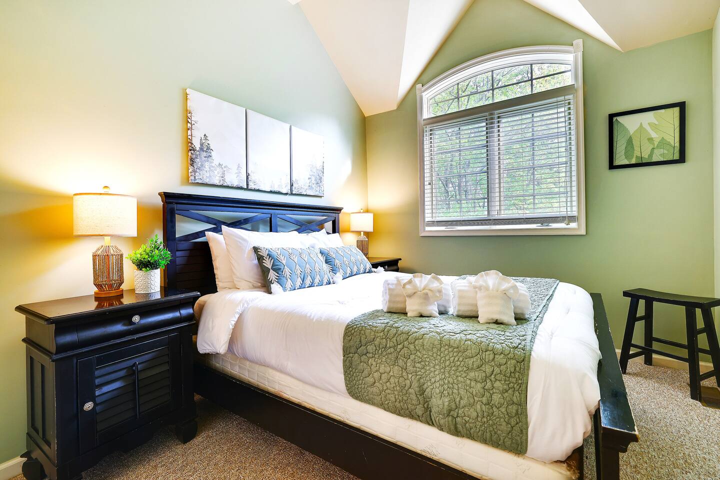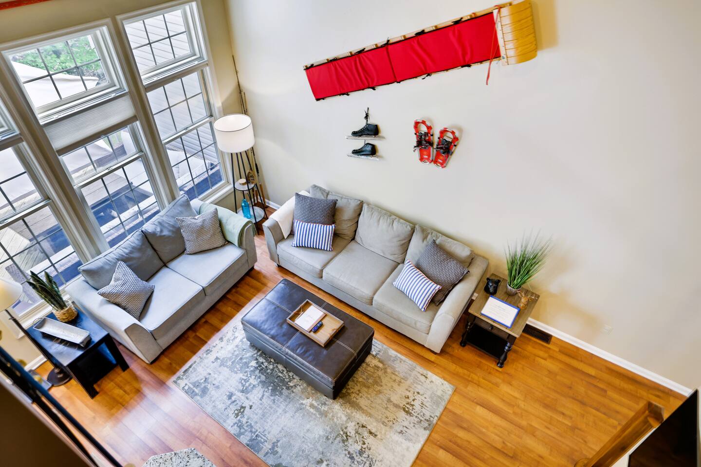 Imagine a home where your family can get away and unwind any time of the year! A quiet community with 175 acre lake and beach on site. A place with less than a half mile drive to ski the black diamonds or hang out in the lodge. Enjoy rounds of golf at the new Jack Frost National 5 star golf course with rolling greens and breath-taking views. It's all waiting for you today! *Please read full description as it will detail some updates being made for your upcoming stay! New bedding, some bed layout changes, more decor and game room updates. Pictures will be updated on or about June 15th :) This is a 5 bedroom 3.5 bath townhome located right at the slopes of Big Boulder Mountain in Lake Harmony PA. In the summer you are minutes from Big Boulder Lake, your stay will INCLUDE LAKE CLUB ACCESS for 12, complete with sandy beach, pool,hot tub, pontoon rentals, basketball, tennis, ping pong picnic area and Boulder View Tavern next door! *all equip/boat rentals are at guest expense* In the winter, you are minutes from the lodge & skiing.. with beautiful mountain views from the back deck With 3 levels, you will never feel cramped! Easy to bring a few families where everyone has their own space! MAIN LEVEL~ Entering the home on the middle floor, you will come up 5 steps to enter the front door, and find the Master bedroom, hallway bath, Kitchen, Dining area and 1st of 2 Living Rooms. The Deck is also off of the dining room on this level, with dining furniture and overlooks the Tennis Courts. The Kitchen is fully stocked with the necessary cookware dishware and utensils for preparing your gang great meals! With an open floorplan, even the designated chef can be a part of the fun! Enjoy the Gas Fireplace in the center of the space while kicking back and watching a movie UPPER LEVEL~ 2 bedrooms, Loft sleeping and full bath LOWER LEVEL~2 bedrooms, 1 full bath, 2nd Living Room with gaming area and laundry. Access outside thru sliders will take you to a covered seating area looking out to the Tennis/Pickleball court. The Game Room has a Shuffleboard Table (new addition), AirHockey Table and Foosball Table. Lots of board games provide as well for fun family time! BEDROOM SETUPS: 1. Master is on main floor, upgrading to a King bed in May (as listed). Smart TV, Room Darkening blinds, bureau and large closet. The En-Suite bathroom includes a corner soaking tub, walk in shower and lit vanity. 2. Upstairs 1 has Two Twin Beds, Bureau Closet and TV 3. Upstairs 2 has a Queen bed, bureau, Closet and TV 4. Lower Level 1 has a Twin over Full bunk, PLUS another Full Bed. Closet and room darkening blinds 5. Lower Level 2 will upgrade to a Queen over Queen Trundle bed, room darkening blinds and large closet 6. Upper level loft has a futon for added sleeping option Other things to note There is assigned parking out front for 2 cars - with passes for 2 additional cars in the overflow parking (first come basis). We ARE Pet friendly- **we ask that you bring furniture covering if they are permitted on beds/furniture at home We do NOT provide beach towels, please bring from home Being in the Big Boulder Community, we have access to the all year round in door Split Rock Water Park. No need to stay at the hotel to gain access but there is a fee to enter. Please be aware we have our own Stay Agreement that you will need to approve once booked to ensure you abide by our terms and conditions and registration with our HOA Please Note: Weekly reservations preferred :)