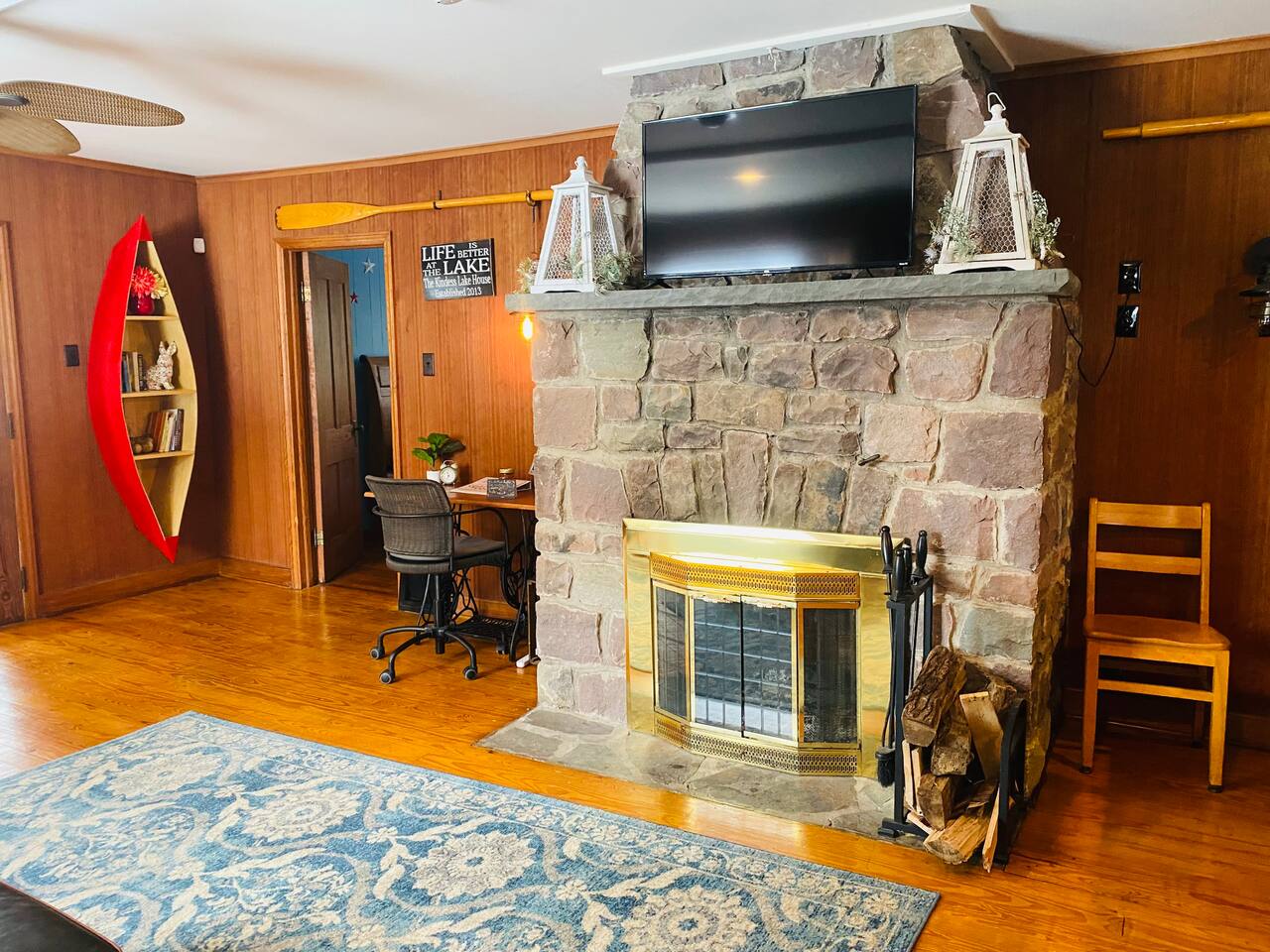 Wake up, suit up and enjoy some Lake Life! We are a leisurely stroll to the restaurants and bars and a few miles from soooooo many area attractions! 4 bedrooms, 2 full baths will sleep 12 comfortably! Ski, Hike, golf, wine tastings, fishing, waterskiing, whatever you are looking for, it’s here! Lots of wildlife around us, as you are surrounded by gorgeous wood work, true to the area and the charm of Lake Harmony as it should be. Those with discerning taste will appreciate!