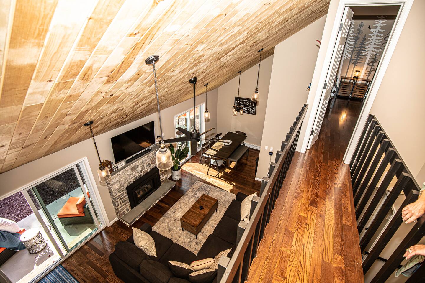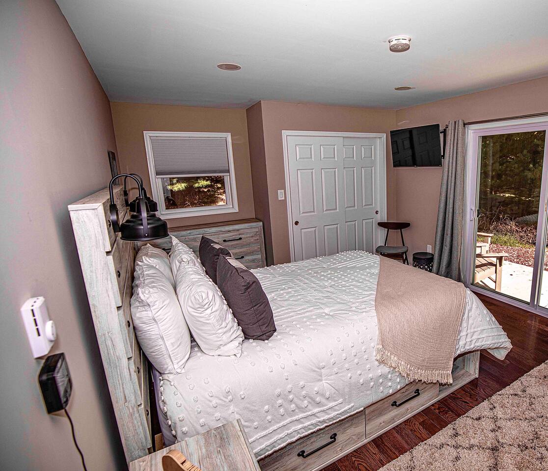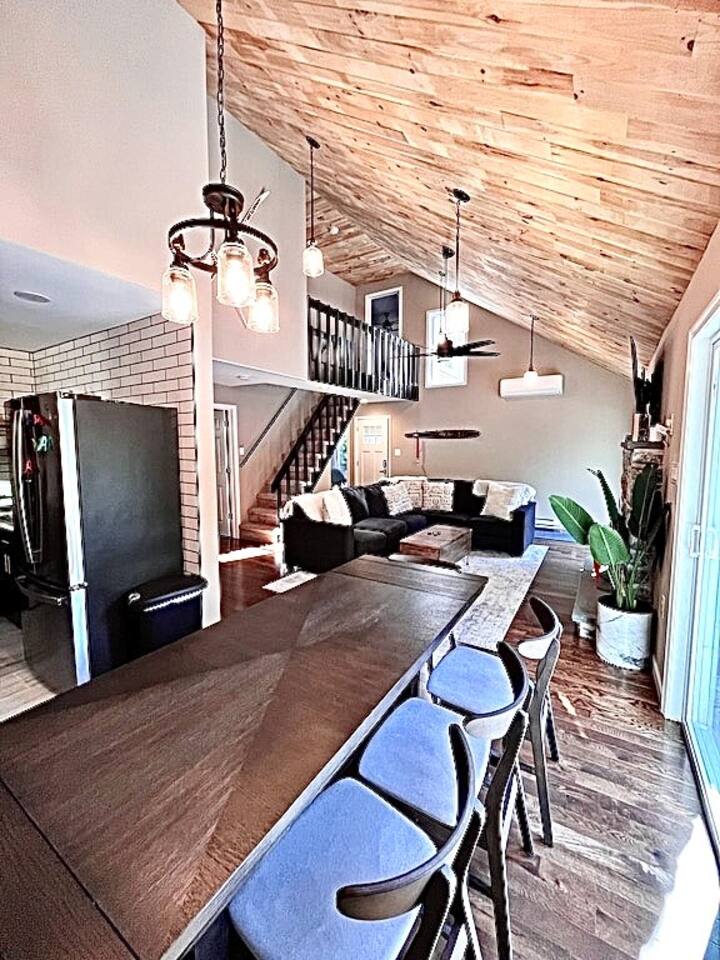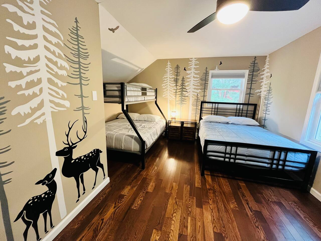 Freshly modern yet fun pocono home in The Estates of Lake Harmony. There's plenty of room for your whole crew! We offer beach access to the Estates Beach in the summer time (Memorial Day thru Labor Day), Tennis and Pickleball court, close proximity to Split Rock and Jack Frost Golf Courses, and soooo much outdoor activity! In the Wintertime you will be just 1.5 miles to Big Boulder or 4 miles to Jack Frost slopes and Tubing! Divine on Lupine is newly furnished, please come and enjoy the thought and effort put into this home. The large dining area provides ample room for everyone to gather around and there is a big sectional sofa for game day or movie night. Outside you can sit out front under the multiple awnings or go to the back yard for smores at the firepit or a soak in the 7 person hot tub! There's no shortage of space and comfort here! Let your VACATION BEGIN! Let's run down the house: Living & Fun Spaces: *All rooms have air conditioning and heating splits* Open concept living area with vaulted tongue and groove ceilings will make you feel welcome the second you enter. Features a first floor living room with Remote Control Gas Fireplace, 55" Smart TV, Large Sectional Sofa and dining for 10. Off of the living area is a separate game room where you will find another smart TV, Arcade table with 60 games for two people, Beer Fridge, oversized Connect4 and futon for the loudest sleeper :) The Game room has glass sliding doors leading out to the Hot Tub patio. Super convenient! Kitchen and Dining: The Kitchen is fully stocked with anything and everything the Chief cook and bottle washer might need to supply the troops! Large cooking pans/pots/utensils and the like are here for you, as well as gas BBQ for out door options. Of course the all important cocktail glasses and coffee maker are at the ready. We have a 12cup drip with frother and option to make single serve or Iced Bedrooms: All Bedrooms have individual heat and AC splits, and room darkening shades. Linens and towels are included, bring your own beach/hot tub towel and toiletries **Bedroom 1~Main floor bedroom is spacious! Queen bed, dresser and full closet with sliders to the side porch. Smart TV and Room darkening curtains/shades included. **Bedroom 2~ Upstairs Queen bed, En-Suite to half bath, with closet, dresser, smart tv and room darkening shades. **Bedroom 3~Upstairs Full Bed with Twin over Full Bed. En-Suite to full bathroom, closet, dresser, smart tv room darkening shades. **The futon is in the downstairs game room. I didn't list it as a 4th bedroom since its used for other shared purposes. Bathrooms: We take great pride in presenting a clean, fresh space for you. You will appreciate the beautiful bathrooms, each having modern fixtures and beautiful wood accents. Full bathroom downstairs, with the 2nd full bath upstairs in the room with Queen bed and half bath in the upstairs room with 3 beds. Productivity Area: We do not use the ‘W’ word when on vacation! If you must bring a little work with you, our 3 person hightop can easily accommodate your laptop! Highspeed WiFi will keep you connected until you can close up shop and get back to the fun! Outside Areas: Breath in the fresh clean air while here! Take your coffee out front to the dining bistro set, read a book under the awning on the side patio or go around back to the circular firepit and have a few beers. The large hottub is around back with separate patio off of the game room. (3 patios in total) Children: Cribs, pack and play, high chairs and bed rails are all available to rent upon request Local Highlights : • The ever-popular Nick's Lake House and Shenanigans are less than 1 mile away for a fabulous meal and great cocktail. The sunsets at Nick's outdoor bar cannot be beat in the summertime! • Walk to Split Rock Lodge on the lake for their outdoor beach bar, Thirsty Moose restaurant and more. • Schedule your tee time at Split Rock Golf Course, just a mile away • Reserve time on the lake via LakeHarmony Watersports or Captain Wolf...rent paddleboards, canoes, sessions for tubing, wakeboarding, and waterskiing. Harmony will also rent sessions on a pontoon boat so you can fit everyone at once! *Bring your tennis or Pickleball racquets and hit our community court MORE THAN A LAKE & SKI DESTINATION In addition to the lake and skiing, we are very close to ATV tours, restaurants, bars, h2ooooh waterpark, golf course and slopes. Literally less than 5 minutes. And Kalahari Indoor Water Park is about 20 mins away. Hiking, mountain biking, paintball, NASCAR racetrack, Jim Thorpe, horseback riding, whitewater river rafting, pumpkin & Apple picking. You name it, it’s all within 5-20 minutes from us! Things to note- Guest agrees to approve our stay agreement sent via guest portal once booked Guest agrees to provide proof of ID via drivers license & must meet age requirement of 24+ No smoking indoors, left buts will cost $10per Pet fee $50 PerPet/PerStay I will send you details about local attractions and shopping once you book. We can't wait to have you! Amy Servis FreeBirdConsulting **PS, if this house isn't available, please ask me for availability at one of my other 12 homes in Lake Harmony! 2 bedroom-5bedroom