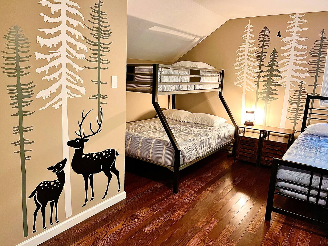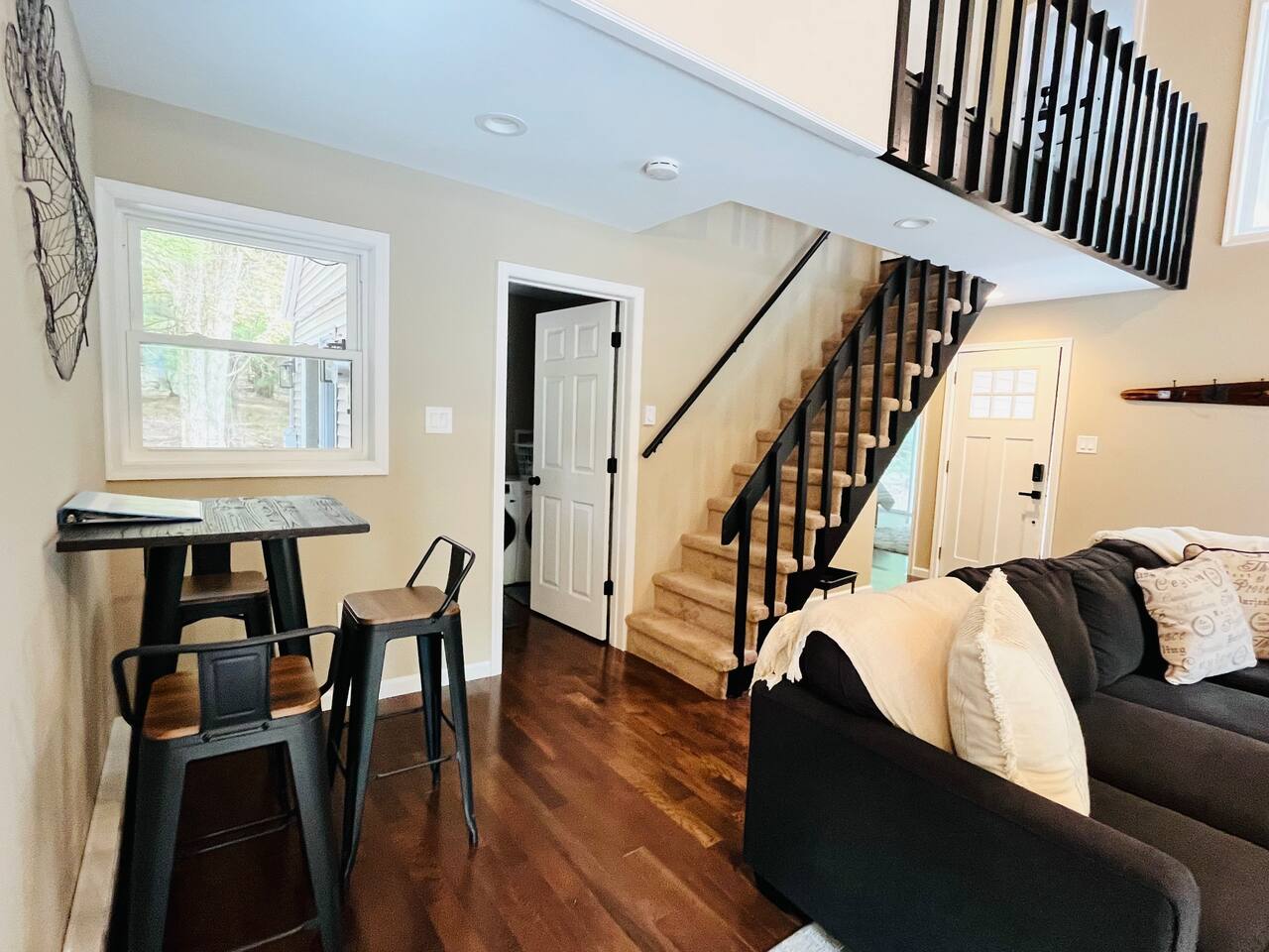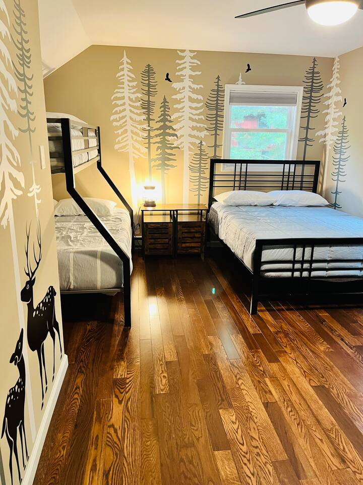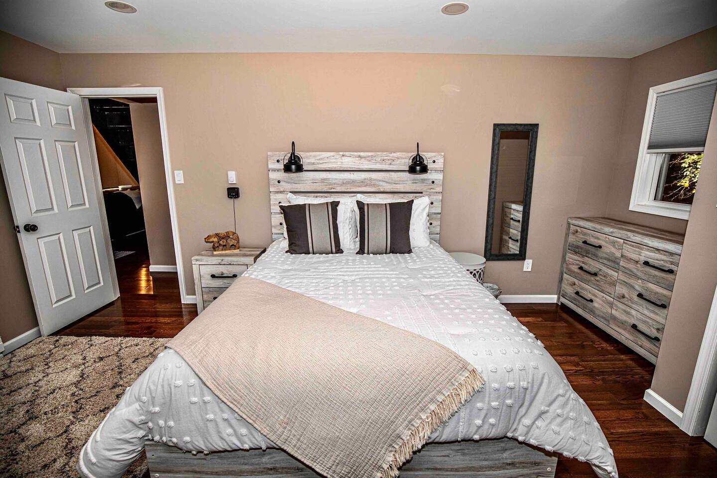 Freshly modern yet fun pocono home in The Estates of Lake Harmony. There's plenty of room for your whole crew! We offer beach access to the Estates Beach in the summer time (Memorial Day thru Labor Day), Tennis and Pickleball court, close proximity to Split Rock and Jack Frost Golf Courses, and soooo much outdoor activity! In the Wintertime you will be just 1.5 miles to Big Boulder or 4 miles to Jack Frost slopes and Tubing! Divine on Lupine is newly furnished, please come and enjoy the thought and effort put into this home. The large dining area provides ample room for everyone to gather around and there is a big sectional sofa for game day or movie night. Outside you can sit out front under the multiple awnings or go to the back yard for smores at the firepit or a soak in the 7 person hot tub! There's no shortage of space and comfort here! Let your VACATION BEGIN! Let's run down the house: Living & Fun Spaces: *All rooms have air conditioning and heating splits* Open concept living area with vaulted tongue and groove ceilings will make you feel welcome the second you enter. Features a first floor living room with Remote Control Gas Fireplace, 55" Smart TV, Large Sectional Sofa and dining for 10. Off of the living area is a separate game room where you will find another smart TV, Arcade table with 60 games for two people, Beer Fridge, oversized Connect4 and futon for the loudest sleeper :) The Game room has glass sliding doors leading out to the Hot Tub patio. Super convenient! Kitchen and Dining: The Kitchen is fully stocked with anything and everything the Chief cook and bottle washer might need to supply the troops! Large cooking pans/pots/utensils and the like are here for you, as well as gas BBQ for out door options. Of course the all important cocktail glasses and coffee maker are at the ready. We have a 12cup drip with frother and option to make single serve or Iced Bedrooms: All Bedrooms have individual heat and AC splits, and room darkening shades. Linens and towels are included, bring your own beach/hot tub towel and toiletries **Bedroom 1~Main floor bedroom is spacious! Queen bed, dresser and full closet with sliders to the side porch. Smart TV and Room darkening curtains/shades included. **Bedroom 2~ Upstairs Queen bed, En-Suite to half bath, with closet, dresser, smart tv and room darkening shades. **Bedroom 3~Upstairs Full Bed with Twin over Full Bed. En-Suite to full bathroom, closet, dresser, smart tv room darkening shades. **The futon is in the downstairs game room. I didn't list it as a 4th bedroom since its used for other shared purposes. Bathrooms: We take great pride in presenting a clean, fresh space for you. You will appreciate the beautiful bathrooms, each having modern fixtures and beautiful wood accents. Full bathroom downstairs, with the 2nd full bath upstairs in the room with Queen bed and half bath in the upstairs room with 3 beds. Productivity Area: We do not use the ‘W’ word when on vacation! If you must bring a little work with you, our 3 person hightop can easily accommodate your laptop! Highspeed WiFi will keep you connected until you can close up shop and get back to the fun! Outside Areas: Breath in the fresh clean air while here! Take your coffee out front to the dining bistro set, read a book under the awning on the side patio or go around back to the circular firepit and have a few beers. The large hottub is around back with separate patio off of the game room. (3 patios in total) Children: Cribs, pack and play, high chairs and bed rails are all available to rent upon request Local Highlights : • The ever-popular Nick's Lake House and Shenanigans are less than 1 mile away for a fabulous meal and great cocktail. The sunsets at Nick's outdoor bar cannot be beat in the summertime! • Walk to Split Rock Lodge on the lake for their outdoor beach bar, Thirsty Moose restaurant and more. • Schedule your tee time at Split Rock Golf Course, just a mile away • Reserve time on the lake via LakeHarmony Watersports or Captain Wolf...rent paddleboards, canoes, sessions for tubing, wakeboarding, and waterskiing. Harmony will also rent sessions on a pontoon boat so you can fit everyone at once! *Bring your tennis or Pickleball racquets and hit our community court MORE THAN A LAKE & SKI DESTINATION In addition to the lake and skiing, we are very close to ATV tours, restaurants, bars, h2ooooh waterpark, golf course and slopes. Literally less than 5 minutes. And Kalahari Indoor Water Park is about 20 mins away. Hiking, mountain biking, paintball, NASCAR racetrack, Jim Thorpe, horseback riding, whitewater river rafting, pumpkin & Apple picking. You name it, it’s all within 5-20 minutes from us! Things to note- Guest agrees to approve our stay agreement sent via guest portal once booked Guest agrees to provide proof of ID via drivers license & must meet age requirement of 24+ No smoking indoors, left buts will cost $10per Pet fee $50 PerPet/PerStay I will send you details about local attractions and shopping once you book. We can't wait to have you! Amy Servis FreeBirdConsulting **PS, if this house isn't available, please ask me for availability at one of my other 12 homes in Lake Harmony! 2 bedroom-5bedroom