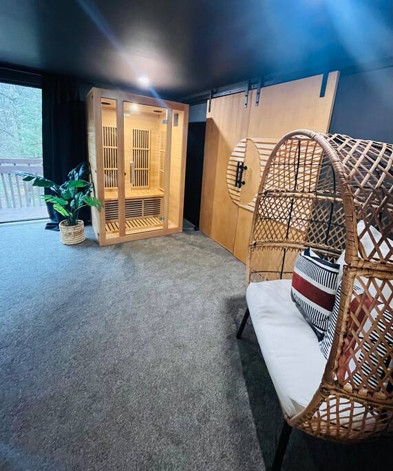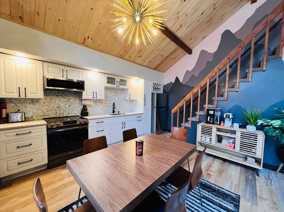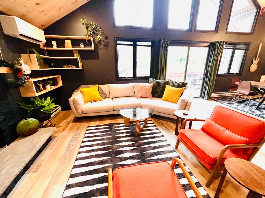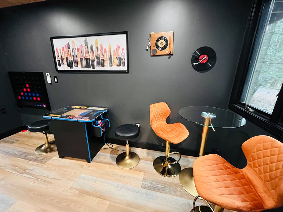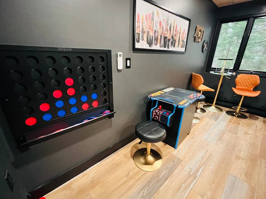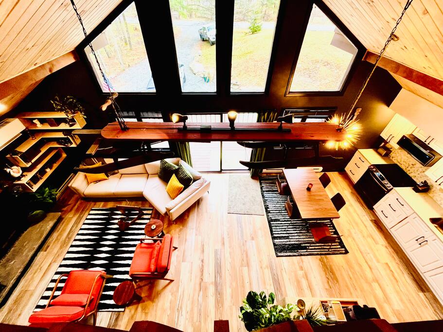Fun Funky Chalet in Lake Harmony! This cozy & tranquil retreat features two bedrooms, two full baths, infrared sauna, Hot Tub for 6 and a fun Game Room including shuffleboard, 2 person arcade table, record player and an oversized Connect4. No matter what the weather brings, you'll always have something fun to do!