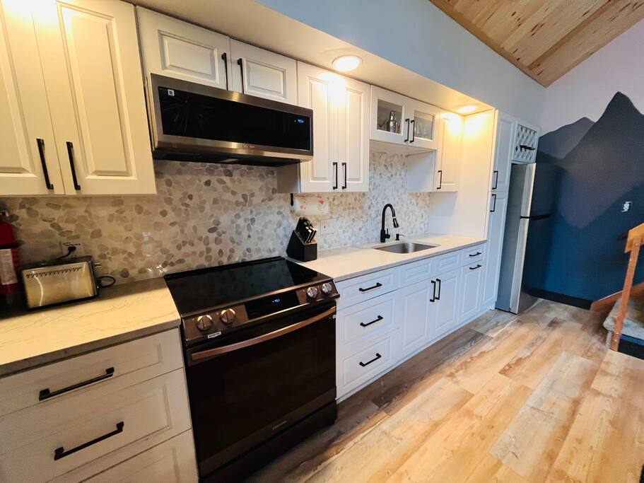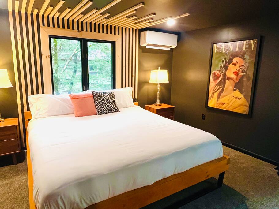 The lofted pine ceiling creates such a warm atmosphere, along with the unique Sled hanging from it! The whole wall mountain mural will remind you that you are on Vacation, so relax and enjoy! The house flow is very open, with a connected kitchen, dining area and living room. The kitchen provides you everything needed to prepare your meals, and has a separate coffee station offering a 12cup drip coffeemaker as well as an Expresso machine. Living space has plenty of seating for all of your guests, with a large Smart TV and real wood burning fireplace, with the game room right off of the living room, The first floor also has the guest bedroom and bathroom. Here is the layout : Main Floor Guest Room includes a Queen and a Full Bed, large closet bureau room darkening shades, Heat & AC split and Smart TV. Main Floor Full Bath has a Shower-Tub combowith 2 head shower, and hair dryer. Second Floor Master Bedroom includes a King Bed, bureau, Sauna, sliders to upper deck, room darkening shades, Smart TV, Heat & AC split unit, and walk in closet. Second Floor En-suite Bathroom has a double sliding door entry, exposing the gorgeous, huge walk-in shower for 2,. The front of the house has a huge wrap around deck with seating, gas firetable and gas grill. The hot tub is located right off of the deck, and the wood firepit is alongside the home. We are Pet friendly! $40 per pet per stay :-) Parking 3-4 cars in the driveway. SUMMERTIME: We will include passes to the private Estates Beach Club! With large sandy beach area, grassy shaded area and swim out platform which is everyone's favorite! Bring your Pickleball racquets and play a round or two on the court. WINTERTIME: We are located 2 miles from Big Boulder Resort which offers Ski/Snowboarding and Tubing into the evenings. Jack Frost Resort is 5 miles and offers Ski & Snowboarding until 4pm I have a local guide that provides all details to local dining, shopping and area fun ideas such as golfing, hiking, water parks and more! We look forward to hosting you! Amy Servis