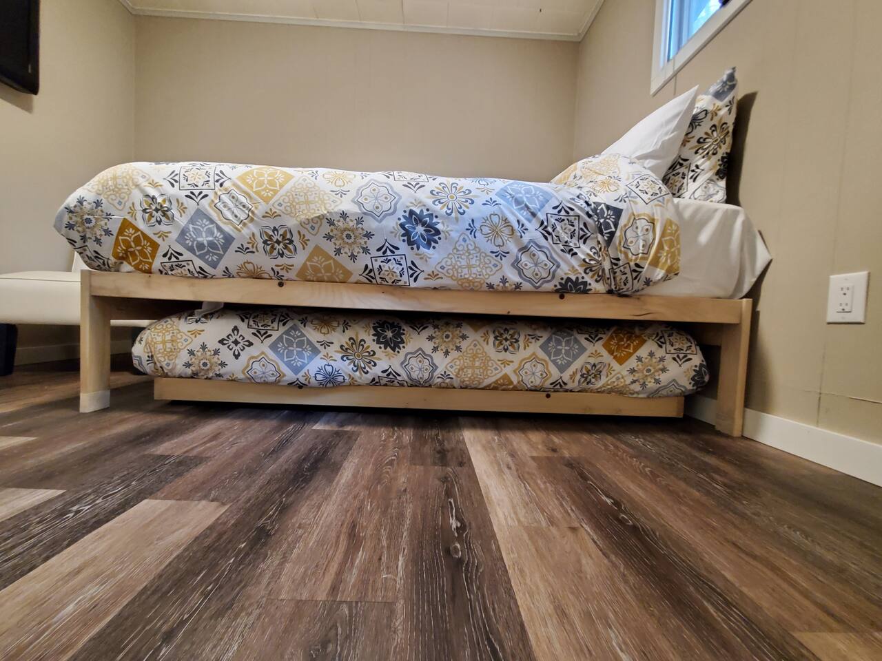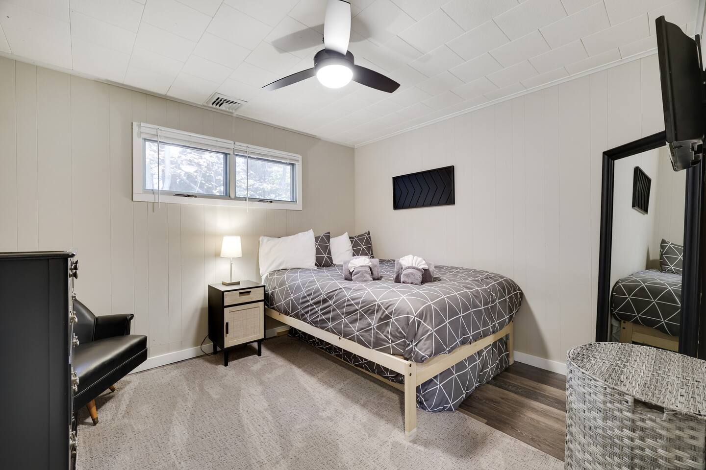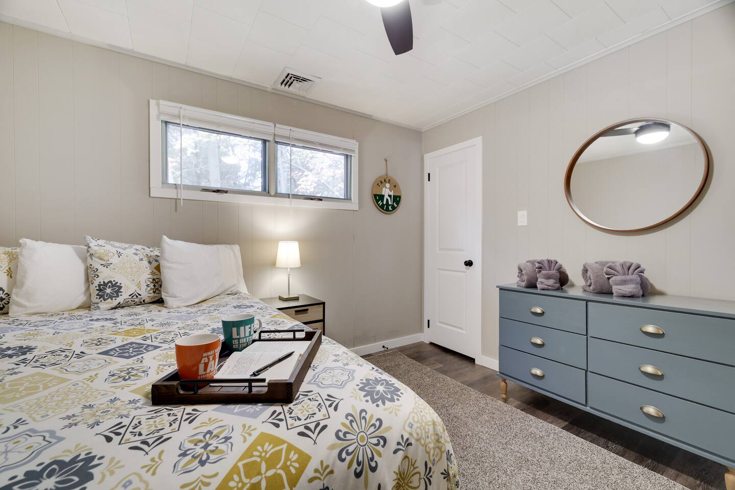 A cozy mountain chalet offering quality pleasures both inside & out. Comes with LAKE and BEACH access free in summertime, close to Ski and Golf too! • Inside you'll find an open layout seamlessly flowing from room to room w propane stone fireplace & gourmet kitchen. • 2 bedrooms w/ trundle beds & SmartTV's. • Outdoor 6 person Hot Tub, Deck propane & Firepit. Modern Elegance and Amenities merged with Rustic Charm, Tranquility & Nature is where you'll make Harmonious Mountain Memories.
