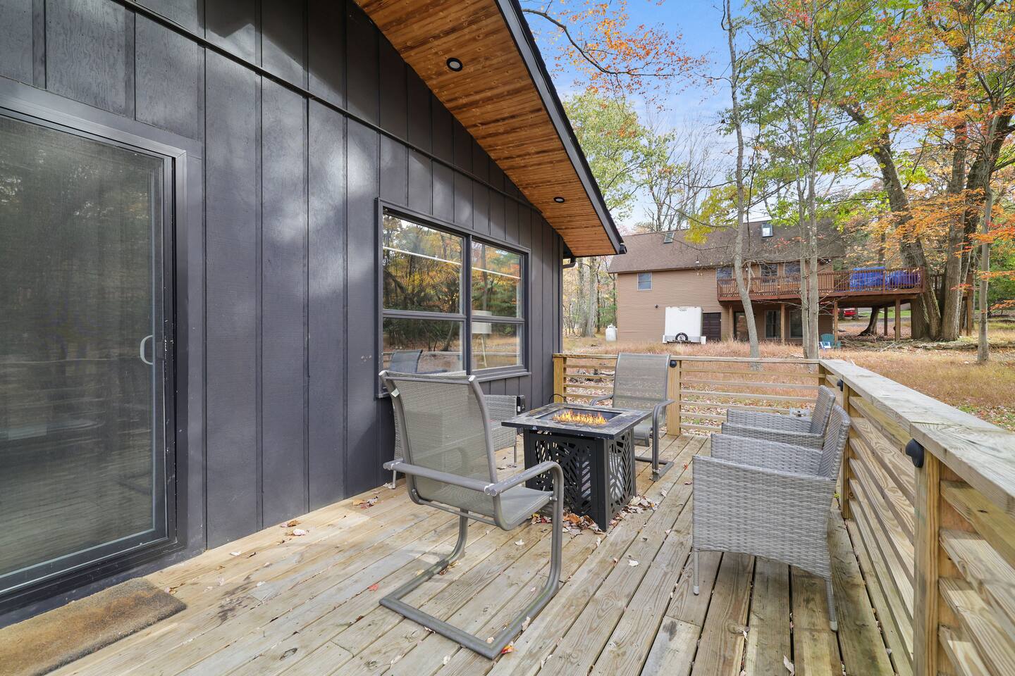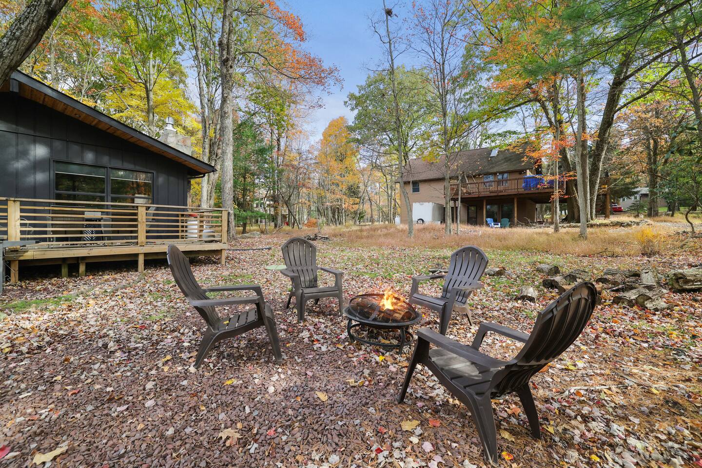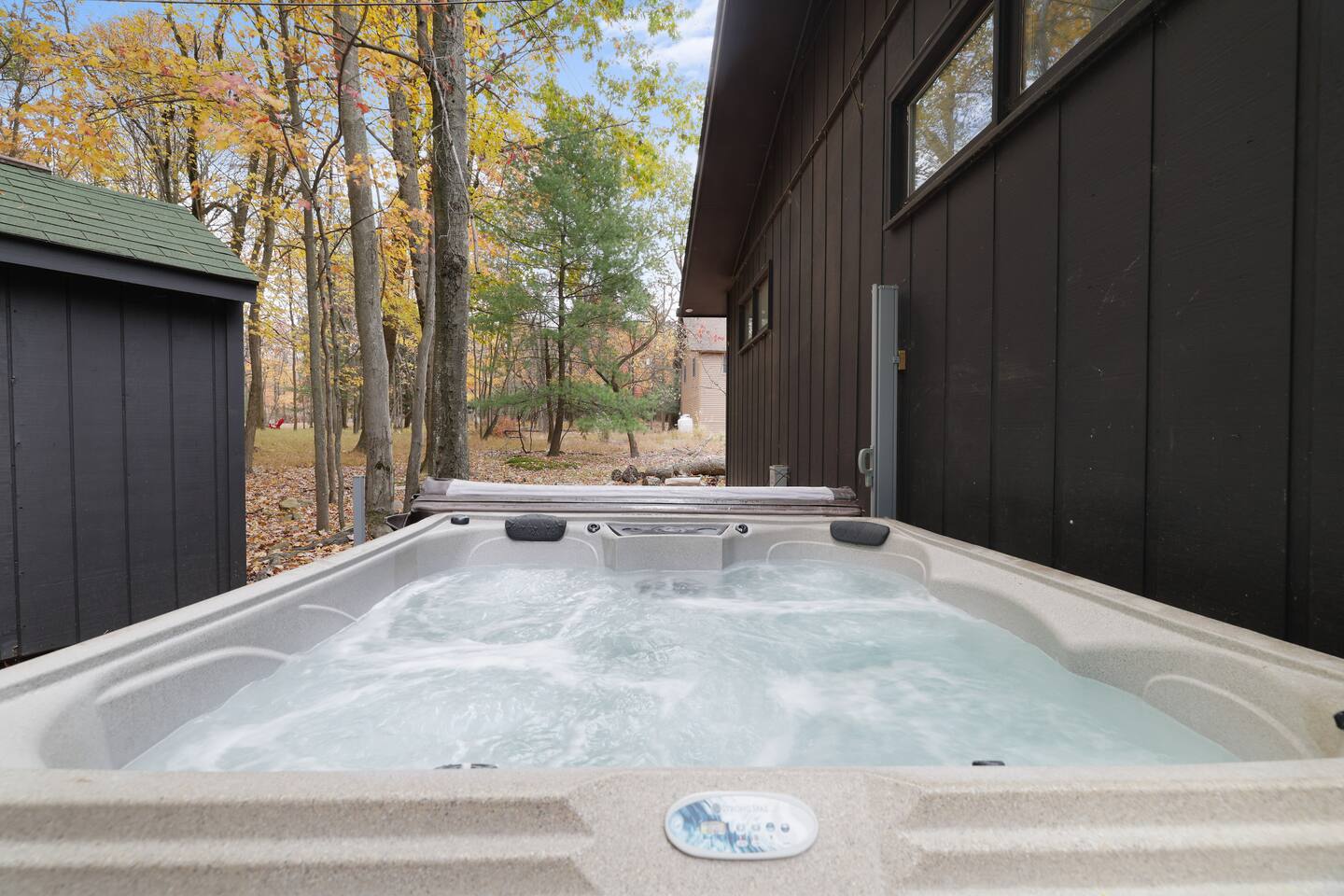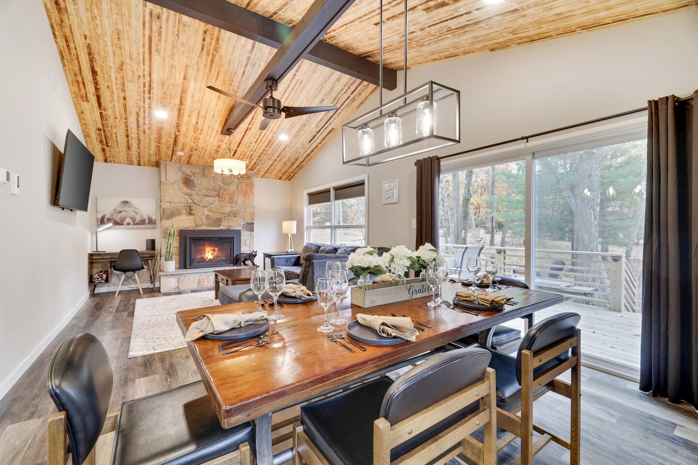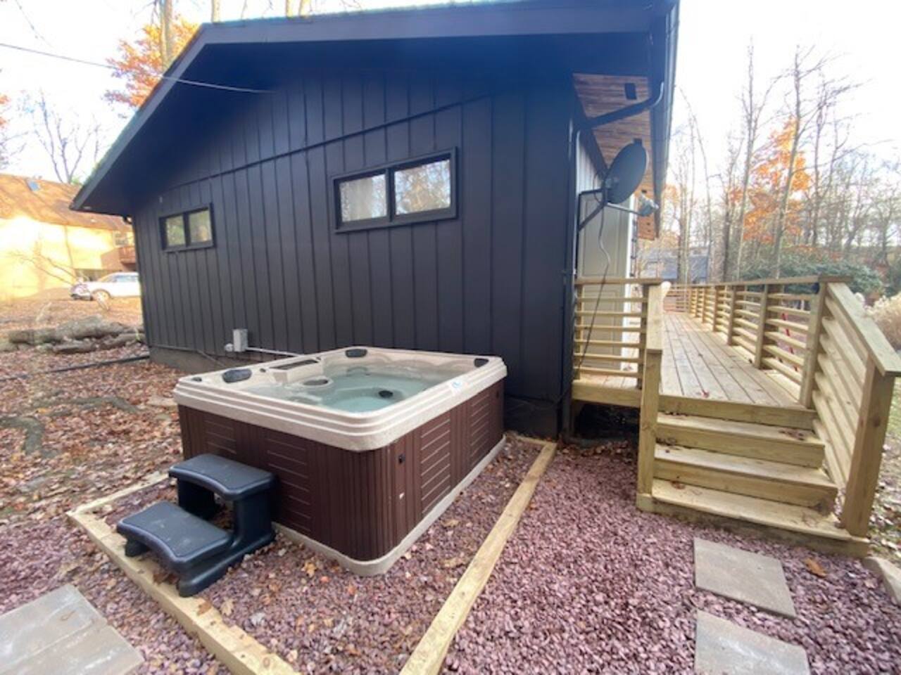 WELCOME TO VACATION! Inside you'll find an open layout seamlessly flowing from room to room w propane stone fireplace & gourmet kitchen. • 2 bedrooms w/ trundle beds & SmartTV's. • Outdoor 6 person Hot Tub, Deck propane & Firepit. Modern Elegance and Amenities merged with Rustic Charm, Tranquility & Nature is where you'll make Harmonious Mountain Memories.→ Vaulted ceilings overtop an open and flowing layout seamlessly combining a spacious living room, dining area and gourmet kitchen. → Living room boasts propane stone fireplace, wrap around sectional sofa and 60" high def TV with streaming service. → Expansive farm style table for group meals or games. → Gourmet kitchen beaming with granite tops, Stainless Steel appliances, elegant tile backsplash and chic floating shelves. → 2 bedrooms both with Queen Size trundle beds, each room equipped with Roku connected wall mounted flat screen TV's & remote operated ceiling fans/lights. → Spa style bathroom boasts a stall shower with bench seat, river rock floors and waterfall shower. Be sure to check out the wifi bathroom audio and illuminated & heated commode seat! → Washer/Dryer provided for your convenience. → Outside features a private rear 6 person Hot Tub for your enjoyment as well as an expanded deck with propane fireplace. → Firepit off the deck for traditional campfires, s'mores, hotdogs & deer watching! → Lake Access comes with your rental! This cabin is located within Lake Harmony Estates, which means you have passes to their private beach area! An easy walk to the lake will bring you to the beach which has sand of course, volleyball and a water float for everyone's fun. → Activities are abundant in the Poconos! Harmony Hideaway is walking distance to Split Rock Resort including their outside beach bar, and moments from Nick's Lakehouse, Shenanigans, Piggy's breakfast spot and the amazing Hog's Heaven Ice Cream and more. Hickory Run State Park hosts Boulder Field, miles of hiking and waterfalls, beaches and more. Take a quick drive and stroll through Jim Thorpe for the day, or visit H2Oooo water park which is just steps away at the Split Rock Towne Center Wintertime fun is a quick 2 miles to Big Boulder, 4 miles to Jack Frost, and 20 minutes to Camelback.. Guest Requirements: provide email to receive and approve Short Term Rental Agreement. Copy of drivers license upon request Guest must be 25yrs of age or older to book. Pet fee is $40 per pet/per stay We hope to see you in Lake Harmony soon! If you have any questions about the home or the area, please ask away! Amy Servis, Free Bird Consulting ps, if your desired dates are unavailable, please ask if I have availability with one of the 12 others in Lake Harmony!