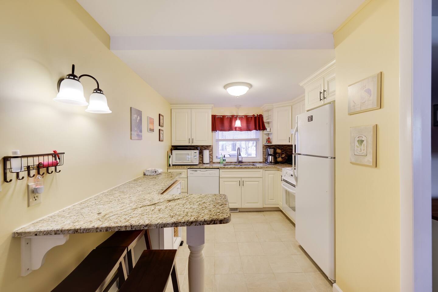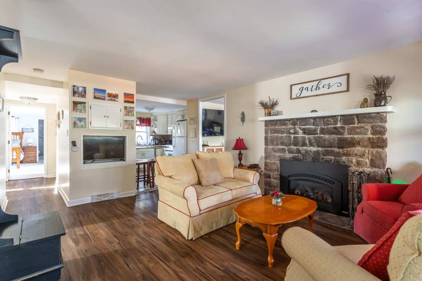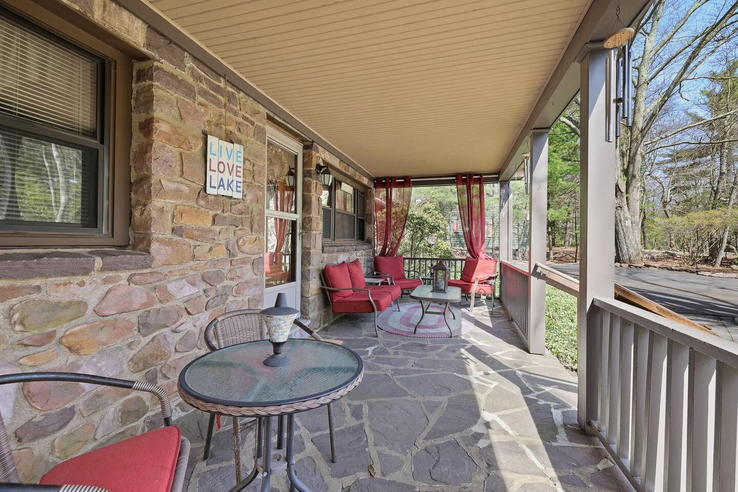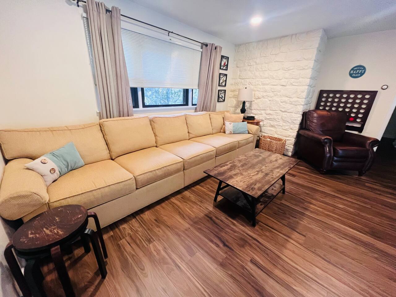 Why Youβll Love It! π Spacious Layout -Sleeps 11 w/ 4 bedrooms, 2 full baths & 2 living rooms π 6-Person Hot Tub βperfect under the stars & open year-round π₯ 2 Firepits β front & back yard π― Game Closet + Outdoor Games β board games, karaoke, cornhole, basketball, giant Connect4 πΎ Family & Pet Friendly! β ($50 per pet, per stay) π¦ Wildlife Visits β deer & turkeys & occasional bear stroll by regularly Steps to adventure!β walk to Yeti Watersports, short drive to ski slopes, golf, trails, and waterfalls The Space Bedrooms (4 total / sleeps 11) Primary Suite β Queen bed + en-suite bath (walk-in shower) Bedroom 2 β Two Full beds Bedroom 3 β Full bed + Twin trundle Bedroom 4 β Queen bed + Full bed Bathrooms (2 total) Primary ensuite with walk-in shower Hall bath with shower/tub combo (great for kids) Living Spaces Front Living Room β Smart TV, gas fireplace, comfy seating Second Living Room β huge sectional, Smart TV, stocked game closet, outdoor views Large dining table for meals & game nights Kitchen β Fully stocked with cookware, spices, coffee/tea, blender, baking sheets, and more Entertainment & Extras Board games, karaoke, cornhole, horseshoes, basketball, Xbox, Wii, giant wall Connect 4 High-speed WiFi (176 Mbps) β perfect for streaming or remote work Smart TVs in living rooms + 3 bedrooms Outdoor Fun Hot tub for 6 (open 24/7, all year) 2 firepits (wood not provided) Hammocks & outdoor dining area Gas BBQ grill Large wooded lot with boulders to explore Nearby Attractions Yeti Watersports (walkable) β paddleboards, kayaks, tubing Big Boulder Ski & Tube β 2 miles Jack Frost Ski & Tube β 5 miles Pocono Raceway β 5 miles Hickory Run State Park β 9 miles (waterfalls + free public beach) Split Rock & Jack Frost Golf β nearby Jim Thorpe β 15 miles Good to Know Must be 25+ to book; ID and rental agreement required Well-behaved, house-trained dogs welcome ($50/pet/stay) Max occupancy: 11 guests Quiet hours: 10pmβ7am (community rules) Security cameras outside only (driveway, front porch, side yard, backyard) Guest Access Self-check-in with door code at 4pm. Free parking on-site. Single-level home β no stairs inside. Come for the hot tub & firepits, stay for the laughter, games, and peaceful mountain air. We canβt wait to host you at Harmony Escape! Amy & Jessica