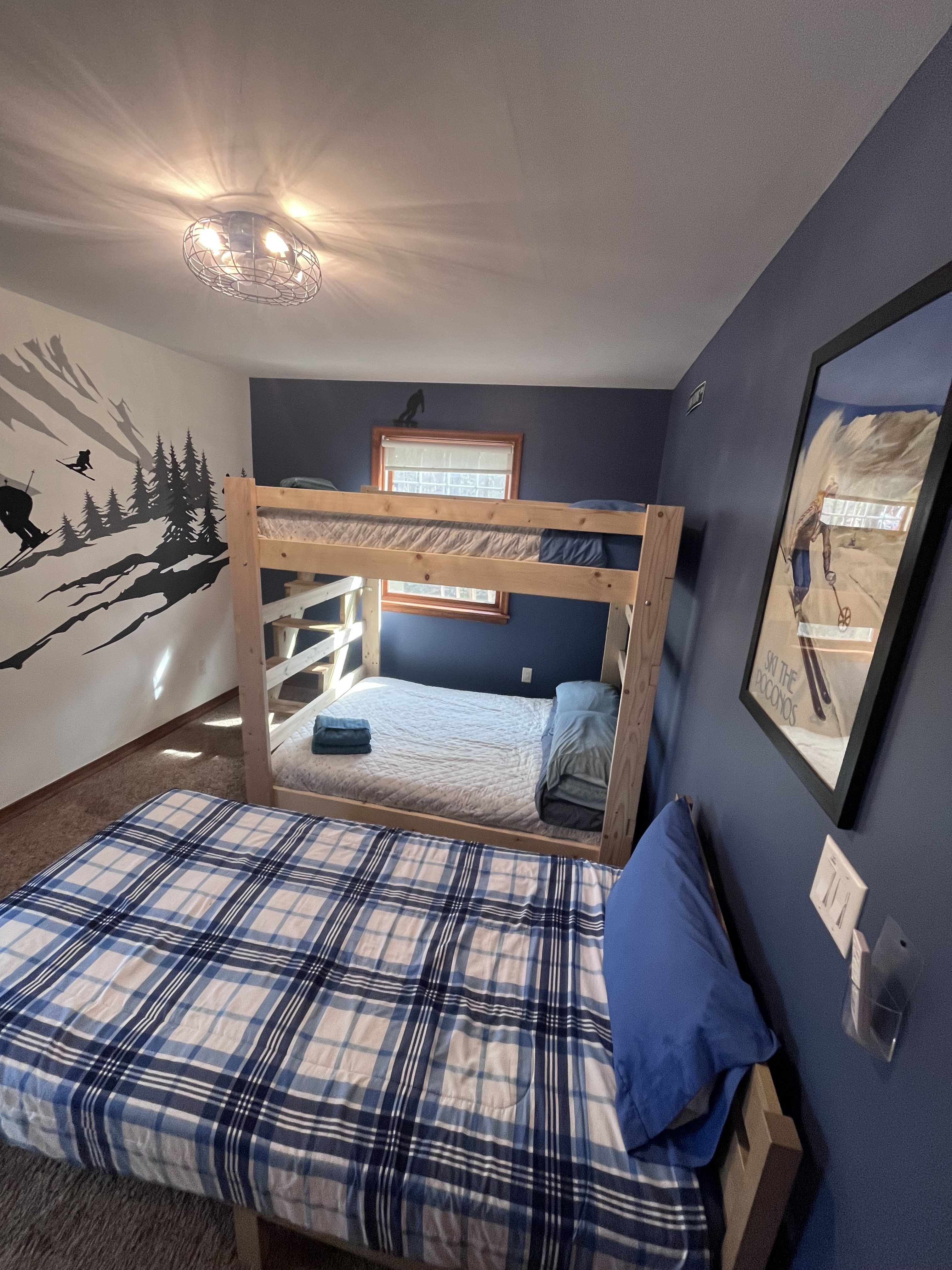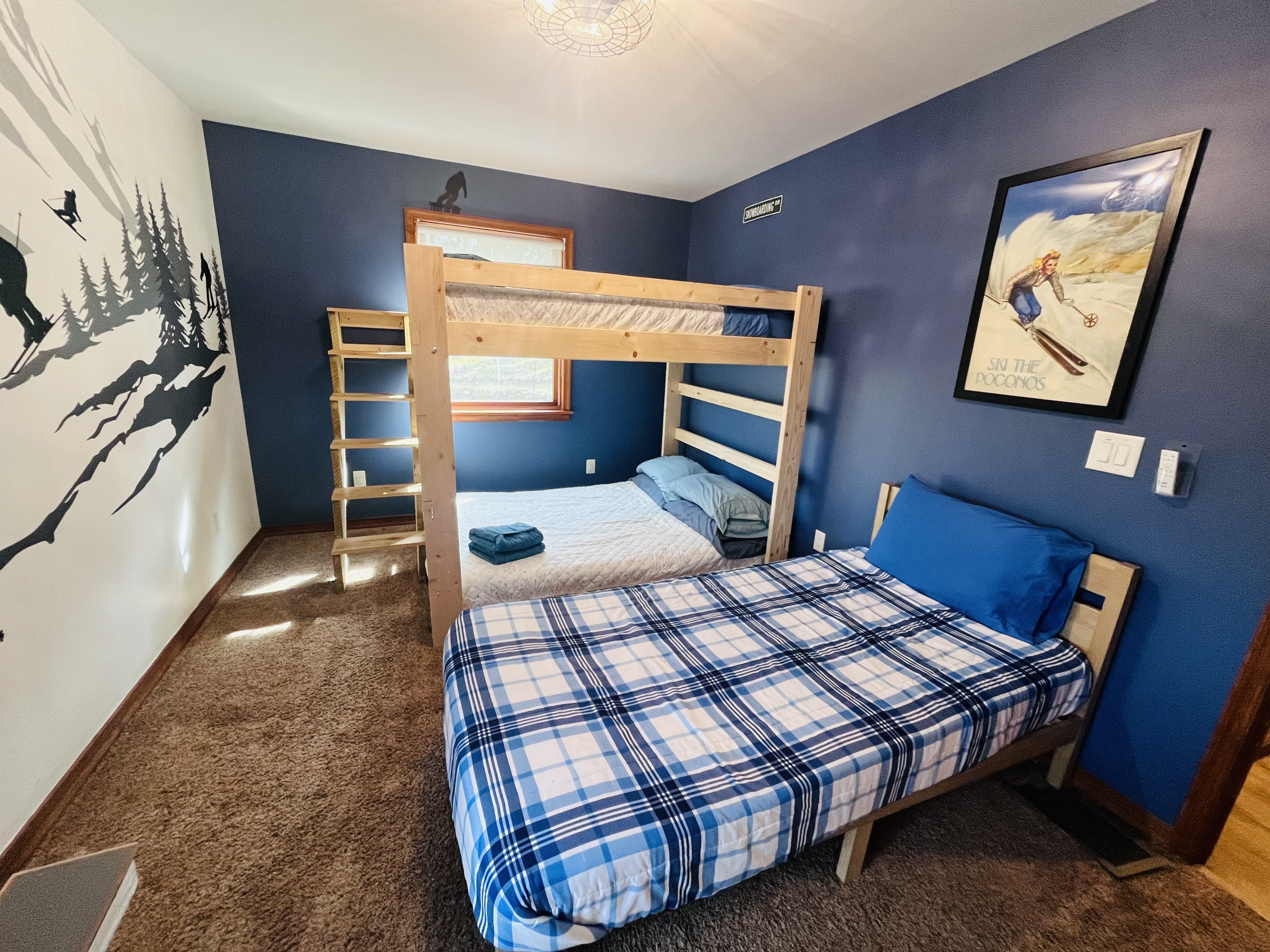 Welcome to this beautiful Lake Top Lodge! No matter why the visit, this house checks all boxes! Enjoy amazing views of the water from a huge front covered porch while sitting at the highest point of the lake. Enter the home to a massive 11 foot dining table, real hardwood floors, and Pocono charm. Enjoy your first vacation cocktail at the bar with wine refrigerator, or take the festivities over to the beautiful granite island in the kitchen. A quick click of a button in the family room will fire up the gas fireplace for cozy relaxation to make you feel right at home. If work / school demands can’t be avoided, don’t skip a beat with free high speed Internet, desk & extra monitor. Once you discover the game cabinet, you can challenge one another while sinking into a soft comfy sofa, one of 4 in the family room. Enjoy views of the lake from the porch or front rooms of the house! Take our Paddleboards and hit the water for your own adventures :) SLEEPING: *Master bedroom is a KING bed with Smart TV, en suite full bath, room darkening shades and ceiling fan. *Guest bedroom 1 : has a full over full solid wood bunk with an additional single bed . ceiling fan, 2 large closets and bureau *Guest bedroom has a Queen and a Full, bureau ceiling fan and room darkening blinds Both guest rooms have central AC Master has portable AC BATHROOMS: *Master bathroom: shower tub combo, heated floors, towel warmer, hairdryer and holds the washer/dryer *Guest hallway bath: located between bedroom's 2&3, with walk in shower towel warmer, hairdryer. OUTDOORS: HUGE front porch with plenty of seating provides the perfect spot to enjoy the gorgeous lake views In the fenced rear yard, you can enjoy a great soak in the 6person Hot Tub, Grill a great dinner on the gas grill, and perfect your smore game around the Solo Fire Stove w adirondack chairs You can also hang out in the beautiful enclosed knotty pine 3-season room with a big glass table with plenty of seating for more gaming or social time. POCONO RACEWAY GAMEROOM: Challenge your friends and family to a game of Pool, Ping Pong Skeeball, Foosball and darts. THE LAKE: Summertime fun is a short walk to the beach, guests take our 2 Paddleboards and hit the water, or rent some time for waterskiing, tubing or wakeboarding! We are 1 mile to Split Rock Golf Club or H2Oooo water park, 6Miles to Pocono Raceway, 7miles to beautiful Hickory Run State Park which has a beautiful free beach to the public, Boulder field or Austin Blakeslee Natural area. Can't forget the white water rafting excursions, ATV, horseback riding or Paintball! Choose from 7+restaurants in the area, just 1.5 miles from the home! In the wintertime, Ski/Snowboard/tubing is 1.5 miles to BigBoulder, or 4 miles to Jack Frost. Furry family members are welcome if housebroken for additional stay fee Guest Requirements Guest must be 24 years of age to book ~Guest will be required to sign our Stay Agreement via their Guest Portal ~Any sort of smoking must be done outdoors ~Pet Fee $50Per Pet/Per Stay We look forward to your stay at Lake Top Lodge in Lake Harmony! Amy Servis FreeBirdVacationHomes ps, if your dates are not available for this home, I have 16+ others in lake harmony that might work! :)