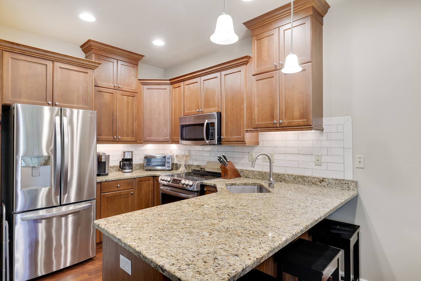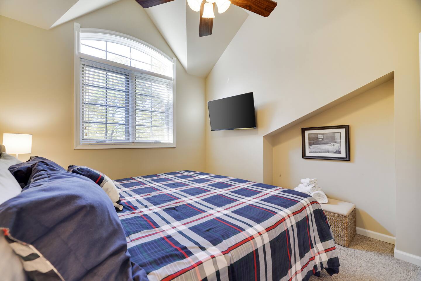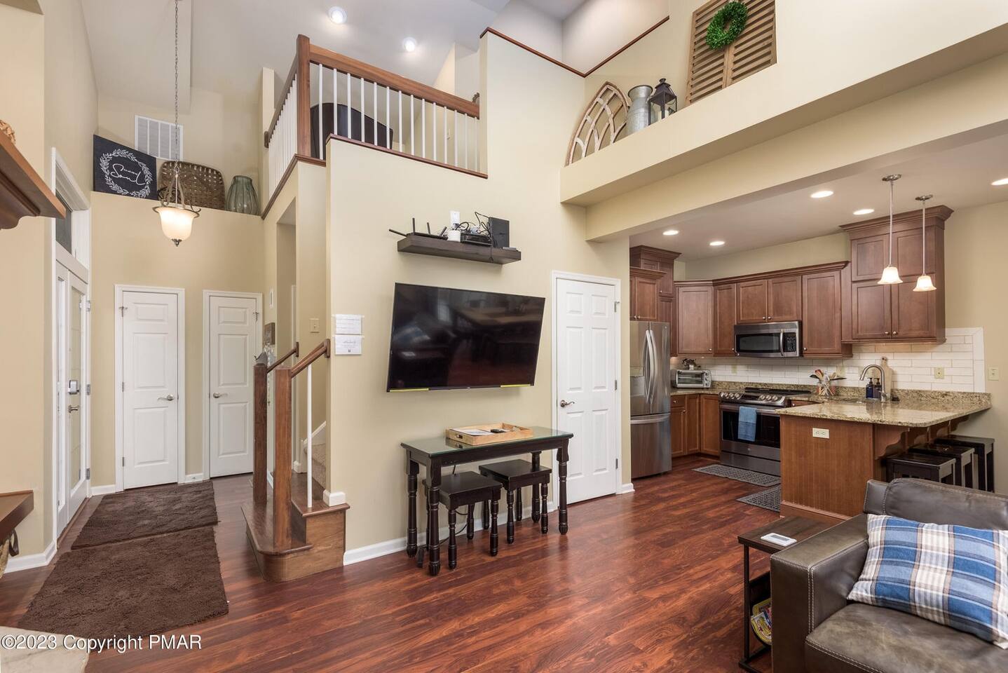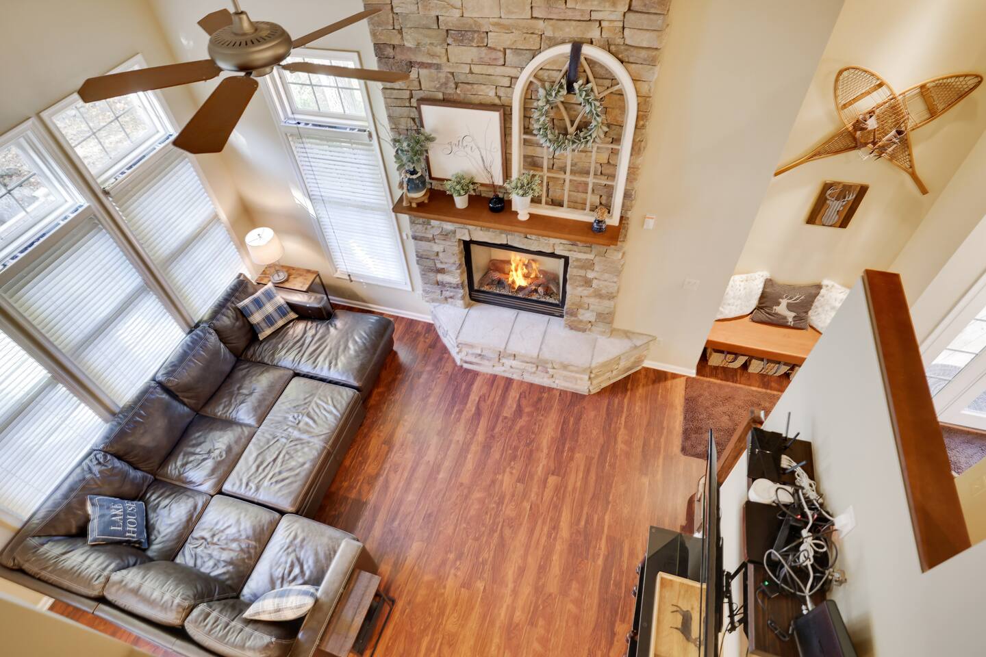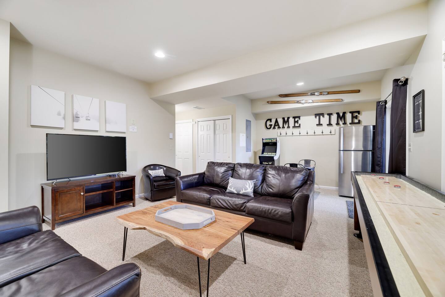 Welcome to your dream retreat in the picturesque Lake Harmony! This stunning 5-bedroom, 3.5 bathroom property provides anything you could want in a vacation spot, and then some! Step inside and be greeted by the grandeur of a two-story living room, adorned with a floor-to-ceiling stone fireplace for that warmth and coziness everyone loves in the cold months. High end kitchen appliances with large granite counterspace and everything one could need for creating special getaway meals is provided. Enjoy 2 living areas! The main floor family room has a massive sectional sofa in front of floor to ceiling windows with remote controlled blinds that will raise and lower based on the time of day for you! Large Smart TV w cable, work station area, gas remote controlled fireplace and open floorplan. The Lower level living area has plenty of seating, another Smart TV w Cable, and lots of entertainment options for everyone! Board games, 12' shuffleboard Table, GoldenTee arcade game, a 2person Arcade table with multiple game options on it. Plus a big Poker Table and full sized beer fridge if you are so inclined :) Slider doors lead you to the back yard with a covered Trex Patio and solid trex adirondack seating area complete with fire table to enjoy the fresh crisp air all year round! Television's in each room are Smart Streaming ready, with Cable TV added to the 2 living room and primary bedroom TV's. BEDROOM LAYOUT: Primary- Main floor: King bed, ensuite bath with standing shower and corner soaking tub. Room darkening blinds, Smart TV, celing fan, large closet & bureau Bedroom 2- Upstairs: Twin Beds, Smart TV, Closet, Ceiling fan Bedroom 3-Upstairs: King Bed, Smart TV, Closet, Ceiling fan Bedroom 4- LowerLevel: Queen Bed, Room Darkening Shades, large closet Bedroom 5- LowerLevel: Full over Full Bunk Bed, large closet Sofa Sleeping- pullout sofa in lower living room BATHROOM LAYOUT: Half Bath- Main Floor Full Bath- Primary Ensuite Full Bath- Upstairs- Shower/Tub combo Full Bath- Lower Level- Shower/Tub combo SUMMERTIME: • Take advantage of our 12 Boulder Lake Club passes included with your stay and enjoy the heated outdoor Pool that sits on the edge of the lake, the large beach area, pingpong, volleyball, basketball, tennis, cornhole, bocce ball and more! You can also reserve an electric Pontoon boat and kayak or setup fishing fun! Just 2/3 mile from the home, drive or walk over! (see map photo in gallery) MORE THAN A LAKE DESTINATION • Schedule your tee time at 2 gorgeous public courses, Split Rock Golf Course just 1 mile away, or Jack Frost National Golf Club, 6 miles up the road. • Waterski and water tube on Lake Harmony with Lake Harmony Watersports or take a leisurely crouise around Lake Harmony with Captain Wolf! WINTERTIME: You can't get any closer to the winter fun than here! Ski and Snowboard from morning till night at Jack Frost and Big Boulder sister mountains! Take an ATV tour, go horseback riding, try one of the 5+restaurants&bars within 3 miles from us, splash @ H2ooooh Waterpark or Kalahari Waterpark. Choose from numerous great Hiking trails, go mountain biking, paintball excursions, cach NASCAR at Pocono Racetrack! Take a train ride in Jim Thorpe or maybe just window shop and eat and drink your way thru the quaint little town. You name it, it’s all within 5-20 minutes from us! I will send you my local guide with details about local attractions and shopping once you book. We can't wait to have you!