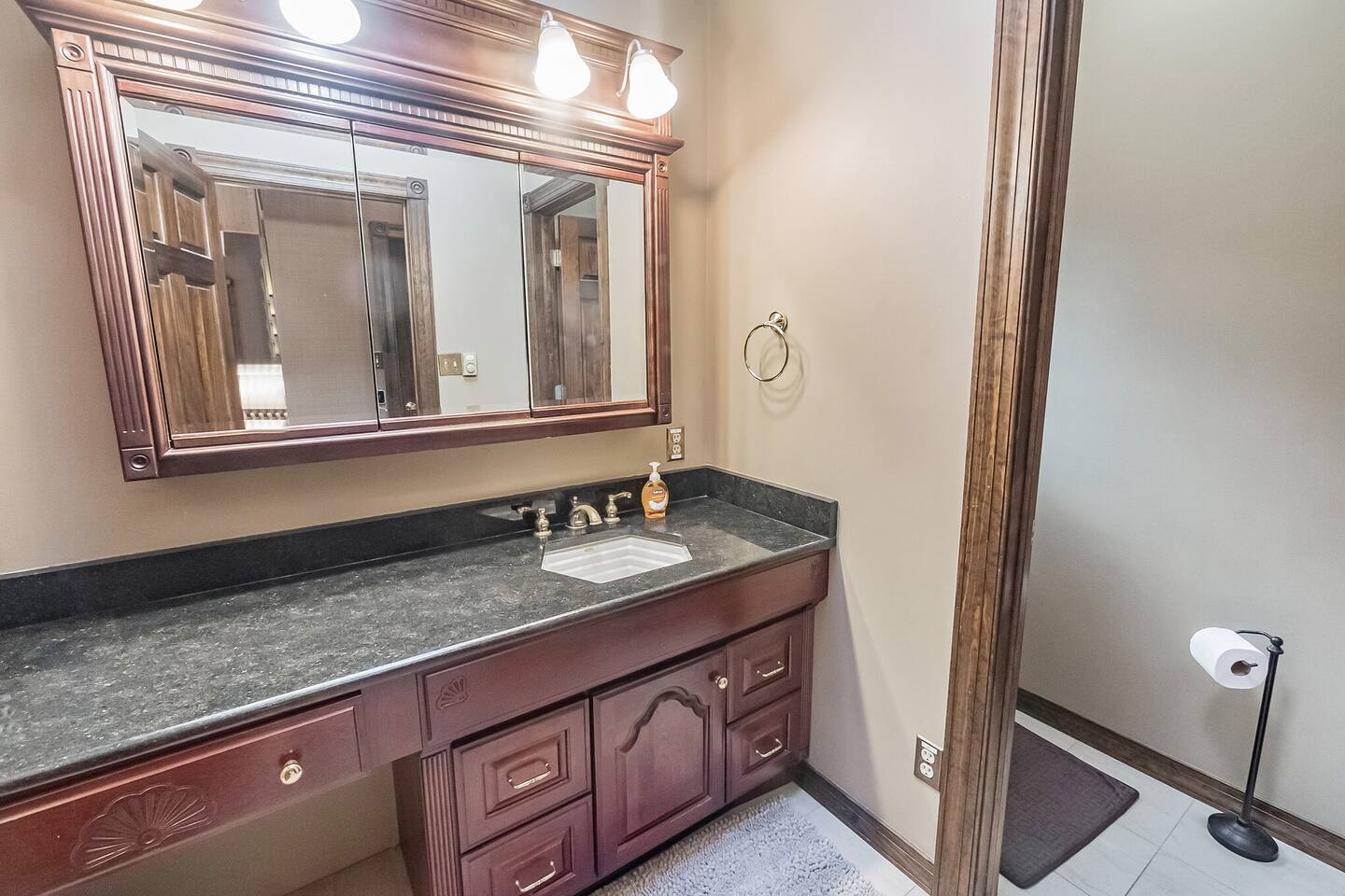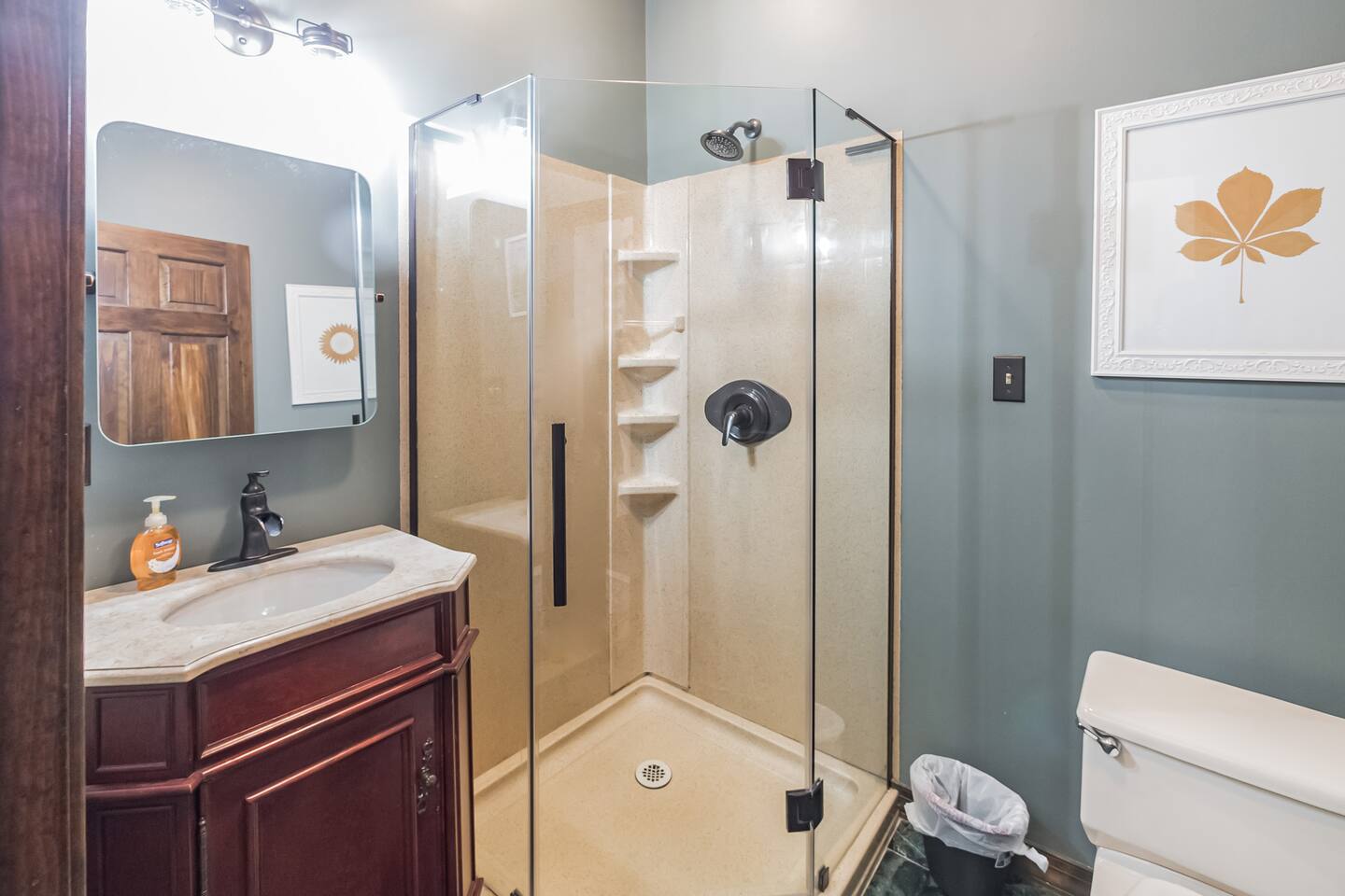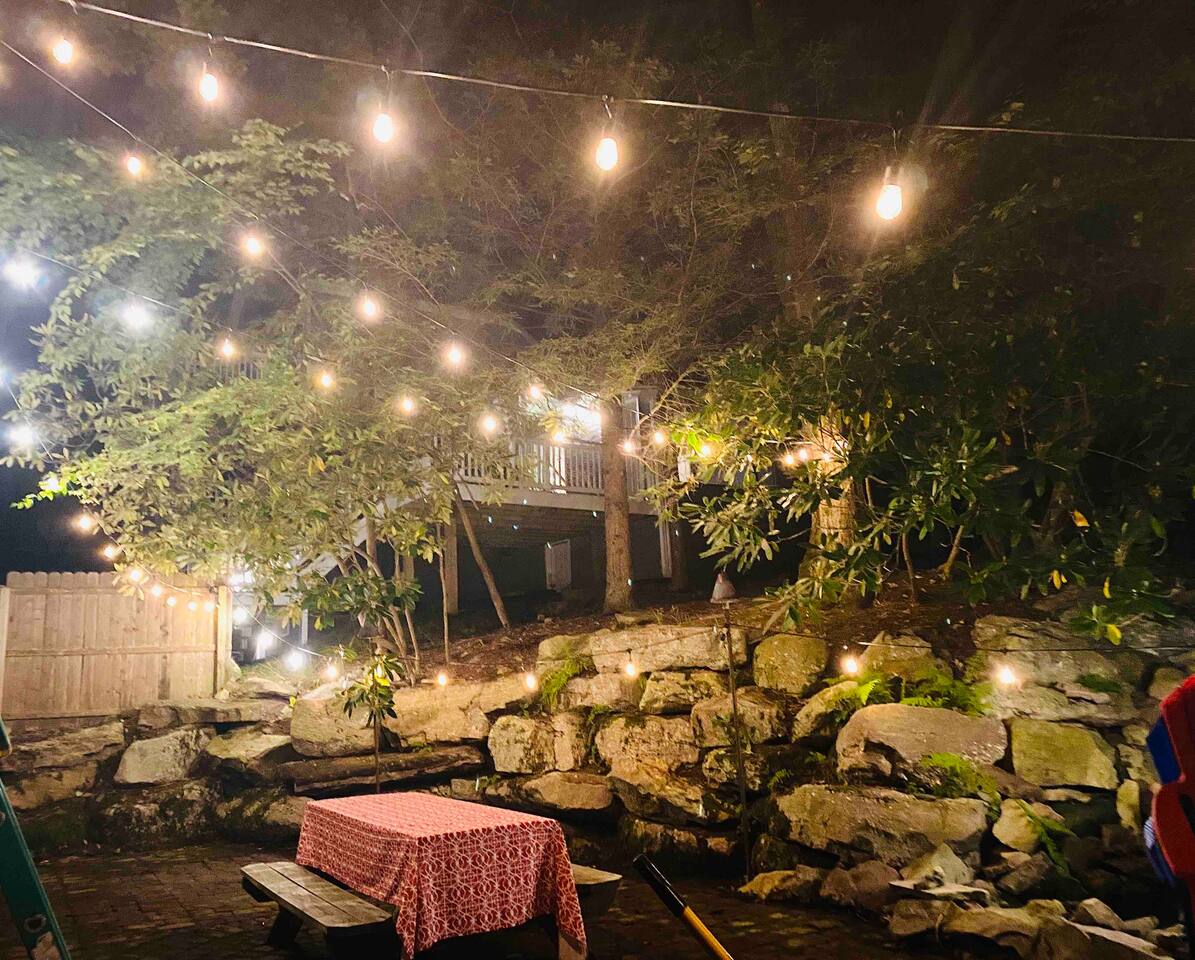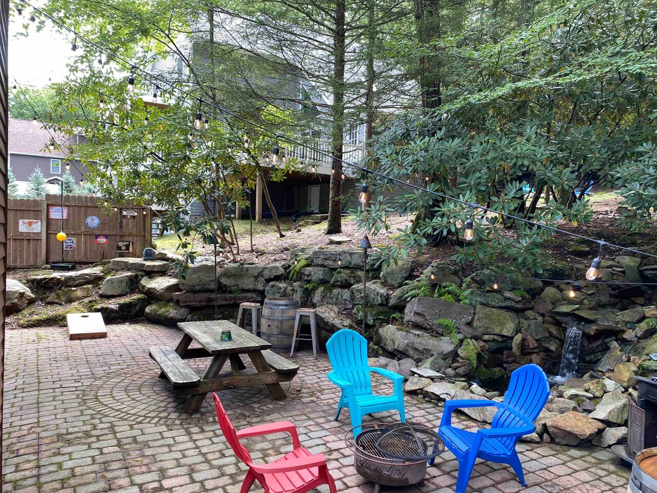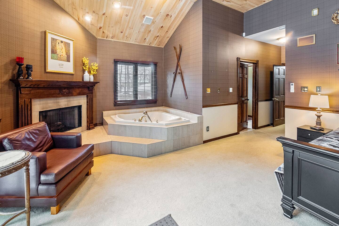 This Lake Harmony Chalet is one of a kind! Located directly across the street from the lake with water views! Glass frontage gives you the ultimate chalet feel year round. REPEAT RETREAT has so much to offer you and yours! Living Space: Gorgeous wood beams, ceilings and walls will surround you in the upstairs living area. Open concept space holds a double sided gas fireplace connecting the living area with the dining area. Above the fireplace is a 42 inch Smart TV, 2 sliding doors to the upper deck looking out at the lake, plenty of seating, games, and even a computer desk w 2nd monitor. DINING SPACE: Off of the kitchen is a large dining table with space for 12. Situated next to the gas fireplace, its a great spot for all meals as well as game nights! KITCHEN: The kitchen is not your usual Pocono rental kitchen. Stainless steel gallery appliances set off the granite counters, real wood cherry cabinets and vaulted ceilings w sky lights make for a great cooking experience. Everything you could need to create family meals is here for you including stovetop and bakeware, plating for 12+, Crab pot, Ninja coffeemaker w frother and single cup capability, 4 slice toaster and more. BEDROOMS: The home sleeps 13 comfortably *Primary: The oversized master bedroom includes Queen bed, a step up jacuzzi tub (not to be confused with a hottub), 42 inch smart TV , Heat and AC Split unit, Large glass windows surround the french door leading to the rear yard and waterfall area, and en-suite bath . *The secondary bedroom has 2 large, super solid wood double over double bunk beds with sturdy wooden steps for top bunk access. Double closets, bureau, and Heat/AC split unit. *The third bedroom has a single bed over full bunk bed, closet, bureau and Heat/AC split unit BATHROOMS: *The En suite Master bath has marble floor, marble counter, separate water closet and full floor to ceiling marble shower. Opt to warm up the floors in the chilly months with the blown heat on the floors and towel warmer. *Guest hallway Full Bath has a standing shower, towel warmer, hair dryer and marble floors *Gameroom half bath is located downstairs at the bottom of the spiral staircase. GAMEROOM/BAR: *Take the party downstairs to the game room! Make a cocktail at the sunken bar with mini fridge with seating for 6. Have fun playing pool, ping pong or challenge your mates on the 60game ARCADE table for 2! Another 40 inch smart TV with all the streaming apps sits above the dual sided gas fireplace. OUTDOOR AREAS: *Enjoy the backyard Beer Garden themed patio, including firepit, picnic table and working waterfall! Overhead garden lights complete the ambiance. *Have your coffee or afternoon beverage out on the front patio overseeing the lake and passerbye's Summertime: In the summertime, Repeat Retreat provides access to the lake via a private point just yards from the home. It's a great spot to get wet and have some fun! (see photo's of Lesher Street and the map in photo gallery) This is a beautiful home with a lot of features you don't see in usual Pocono Rentals. No Paneling here! Local Notables: WALK to Nick's Lakehouse/Shenanigans/Piggy's Restaurant/TerraCotta Restaurant/ Hogg's Heaven IceCream/ Lake Harmony Watersports/ Lake Harmony water tours / Country Peddler Market Lake Harmony isn't just about the lake... we are minutes from white water rafting, paintball skirmish, Hickory Run State Park with it's hiking trails, waterfalls and a large free beach, Boulder Field (so cool!), Pocono Raceway, ATV rentals, and so much more! Well behaved furry family members are welcome Crib, and High chair rentals are easily available, just ask! Don't miss this home for your next getaway! Amy Servis Guest Requirements *Smoking outside only- no butts left behind *Must meet age requirement 25+ w proof of ID *Must sign rental agreement sent via our guest portal *Pets kept off furniture without coverings brought from home *Pet fee is per-pet/ per stay $50 PS: If this home isn't available for your desired dates, please ask me about the 12+ others I have in Lake Harmony/ Big Boulder!