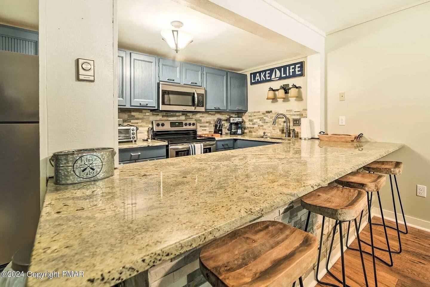 Welcome to our little slice of paradise in Big Boulder! Just 1/3 mile to Big Boulder and 2 minute walk to the Boulder Lake Club beach and pool in the summer, life can't get an easier for your Pocono getaway!! Enjoy the Lake Theme decor as you enter our end unit condo! Enjoy 3 sleeping areas, a roomy open floor plan, kitchen and living space, and get all the fresh air and wildlife you need you want while sitting on the large rear deck! Our beautiful kitchen is stocked and ready for you, with all the necessary cookware you'll need to feed your gang. The huge granite prep island will provide plenty of space for your chef while allowing them to interact in the fun! 4 island chairs and seating for 6 at the dining table will provide plenty of space for family meals. Cozy up on the family room sectional in front of the real wood burning fireplace, firewood provided! We have 3 sleeping areas and 2 full bathrooms: The1st Bedroom is located on the main floor, with a queen bed, smart tv, burea closet and room darkening blinds. The large 2nd bedroom is upstairs, with a queen bed and twin bunks. Bureau, closet and room darkening blinds. The 3rd sleeping area in is the loft area, with a full bed. Full bath downstairs has double vanities, and shower tub combo Full bath upstairs has a walk-in shower and separate deep jetted jacuzzi (not suitable for children) MORE THAN A LAKE DESTINATION • Schedule your tee time at 2 gorgeous public courses, Split Rock Golf Course just 1 mile away, or Jack Frost National Golf Club, 6 miles up the road. • Waterski and water tube on Lake Harmony with Lake Harmony Watersports or take a leisurely crouise around Lake Harmony with Captain Wolf! WINTERTIME: You can't get any closer to the winter fun than here! Ski and Snowboard from morning till night at Jack Frost and Big Boulder sister mountains! Take an ATV tour, go horseback riding, try one of the 5+restaurants&bars within 3 miles from us, splash @ H2ooooh Waterpark or Kalahari Waterpark. Choose from numerous great Hiking trails, go mountain biking, paintball excursions, cach NASCAR at Pocono Racetrack! Take a train ride in Jim Thorpe or maybe just window shop and eat and drink your way thru the quaint little town. You name it, it’s all within 5-20 minutes from us! Other things to note We ARE Pet friendly-$40 per pet per stay **we ask that you bring furniture covering if they are permitted on beds/furniture at home We do NOT provide beach towels, please bring from home Being in the Big Boulder Community, we have access to the all year round in door Split Rock Water Park. No need to stay at the hotel to gain access but there is a fee to enter. Please be aware we have our own Stay Agreement that you will need to approve once booked to ensure you abide by our terms and conditions and registration with our HOA Guest must be 24or older to rent Guest will provide valid ID,l and approve our stay agreement sent thru our guest portal upon booking Pet fee is $40 per pet per stay All smoking must be done outdoors I will send you my local guide with details about local attractions and shopping once you book. We can't wait to have you! Amy Servis